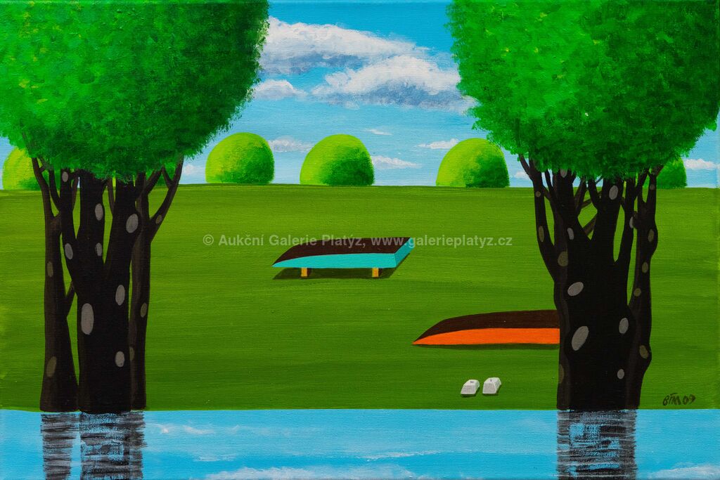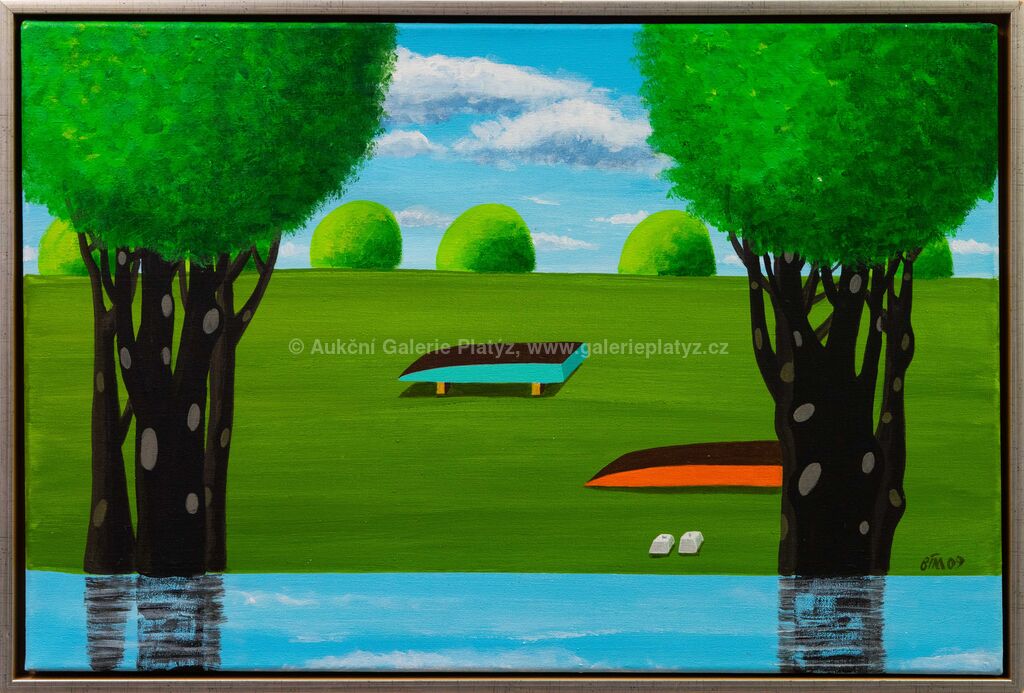 akryl/plátno, rozměr 40 x 60 cm, značeno a datováno vpravo dole, rámováno