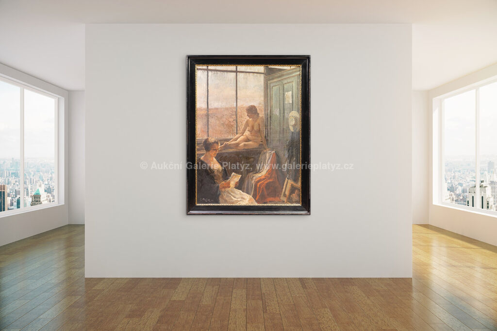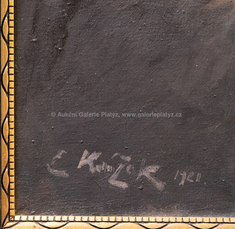 olej/plátno, rozměr 120 x 90 cm (VELKÝ FORMÁT), značeno a datováno vlevo dole, rámováno, poškozený rám