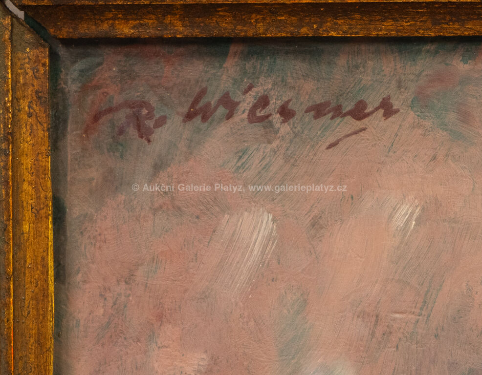 olej/překližka, rozměr 38 x 46 cm, značeno vlevo nahoře, zaskleno, rámováno, oděrky na rámu
