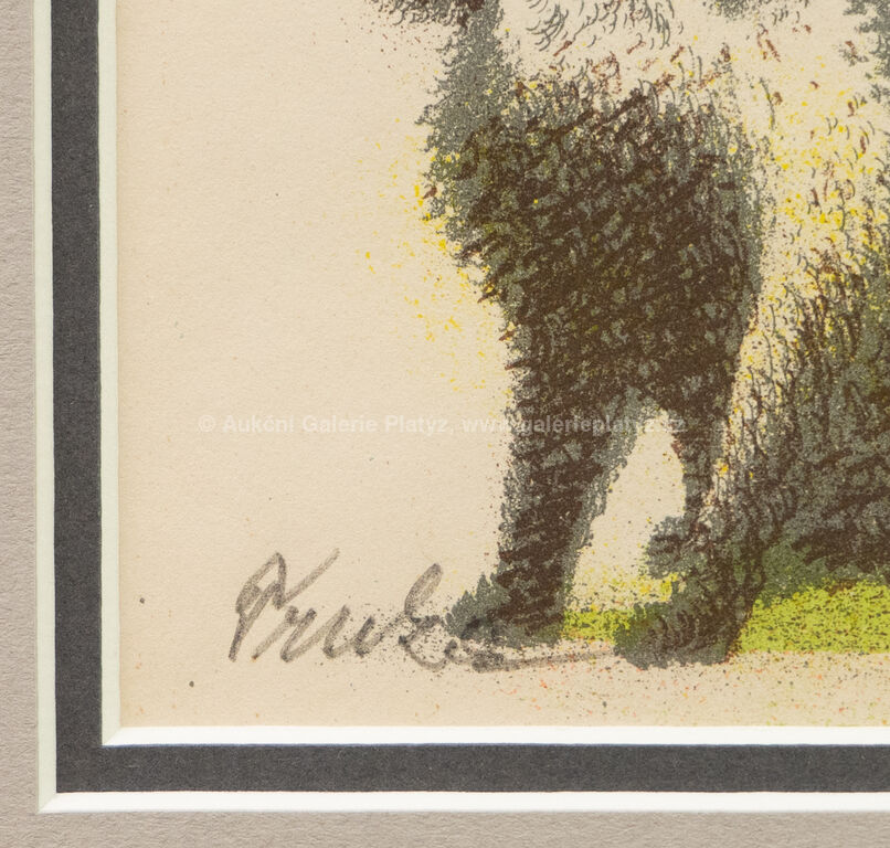 barevná litografie/papír, rozměr ve výřezu 15,5 x 11,5 cm, značeno vlevo dole, paspartováno, zaskleno, rámováno