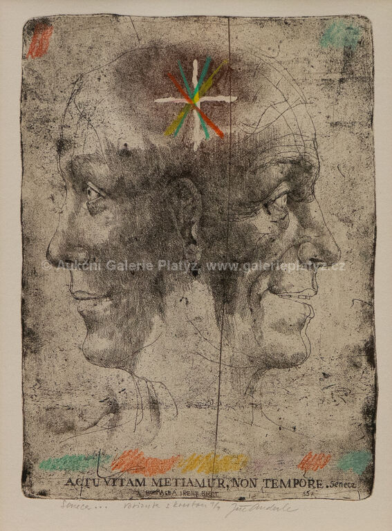 lept/papír, varianta s kresbou 1/1, rozměr ve výřezu 24 x 18 cm, značeno a popsáno ve spodní části, paspartováno, zaskleno, rámováno, oděrky na rámu