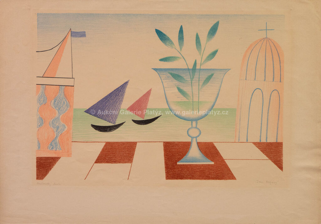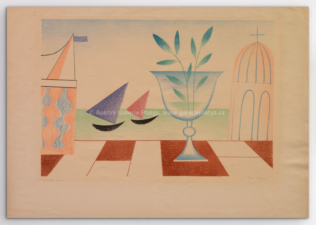 barevná litografie/papír, rozměr listu cca 44 x 62 cm, Autorský tisk, značeno vpravo dole, volně loženo