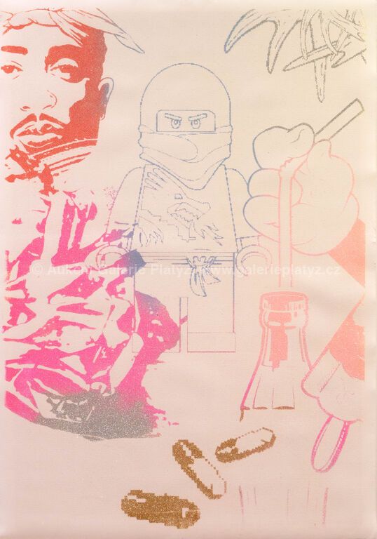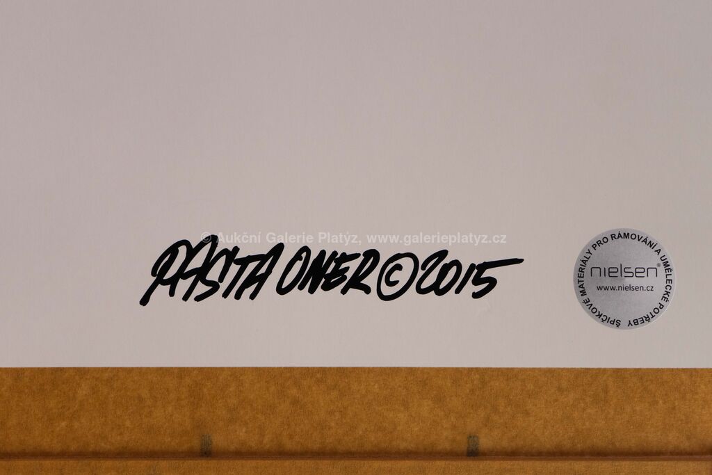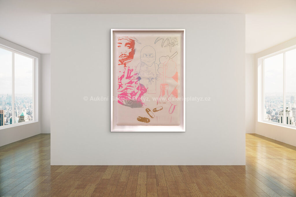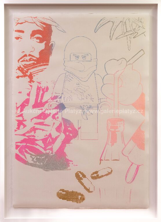 třpytky/ruční papír, rozměr listu cca 102 x 71 cm, značeno a datováno na zadní straně, zaskleno, rámováno, přiložen Certificate of Authenticity vystavený autorem