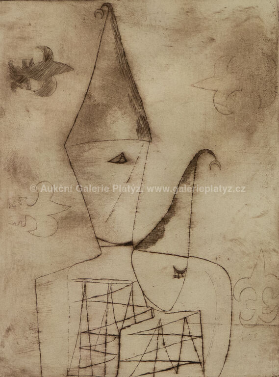 suchá jehla/papír, rozměr ve výřezu 24,5 x 18,5 cm, neznačeno, zkušební tisk, paspartováno, zaskleno, rámováno, publikováno v knize František Tichý Grafické dílo, č. 161, str. 124
