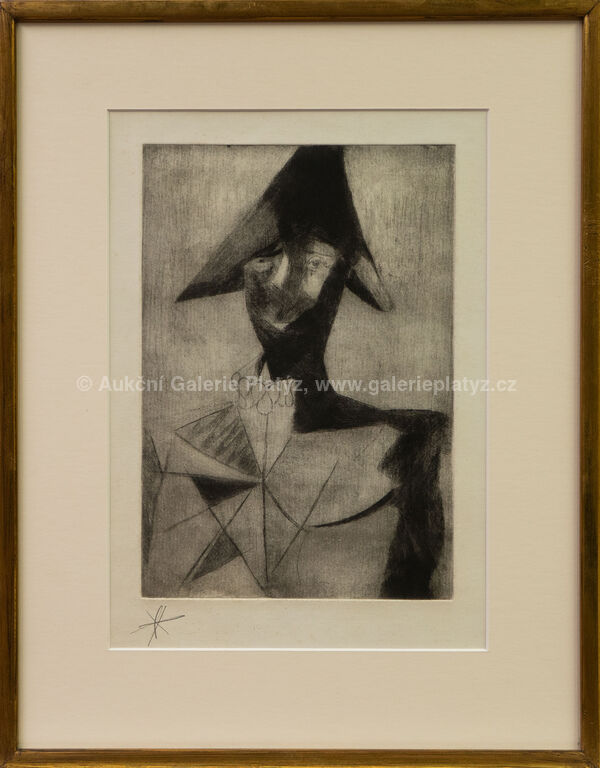 suchá jehla/papír, rozměr ve výřezu 33 x 23,5 cm, neznačeno, zkušební tisk, paspartováno, zaskleno, rámováno, publikováno v knize František Tichý Grafické dílo, č. 107, str. 91