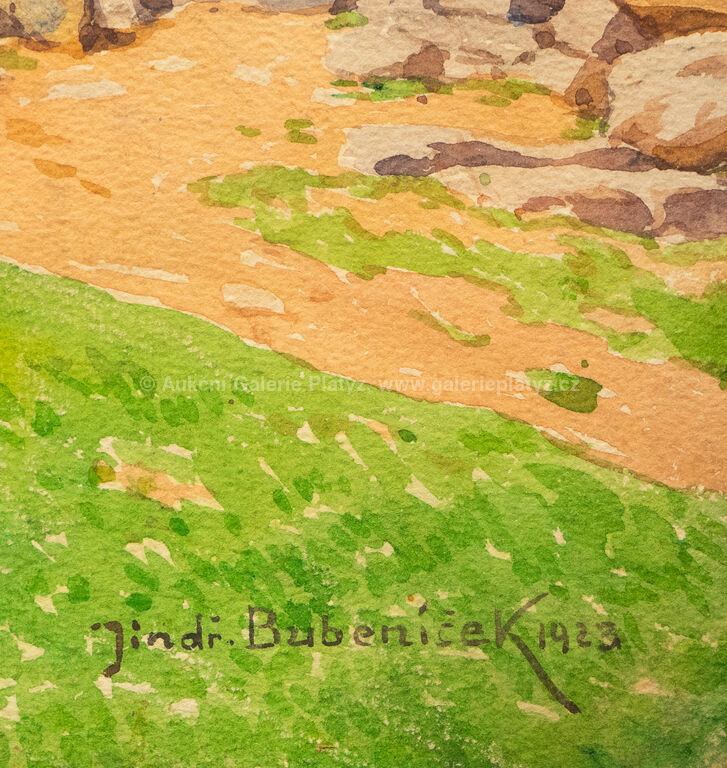 akvarel/papír, rozměr 54 x 43 cm, značeno a datováno vpravo dole, zaskleno, rámováno, oděrky na rámu