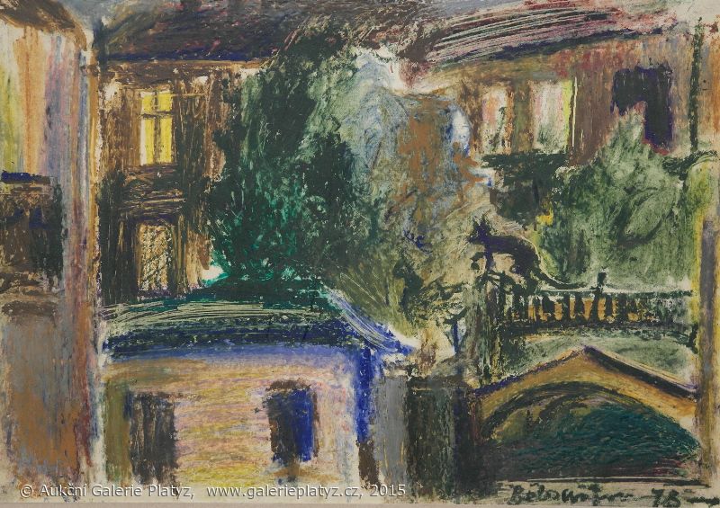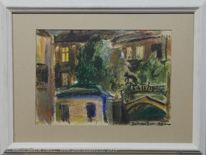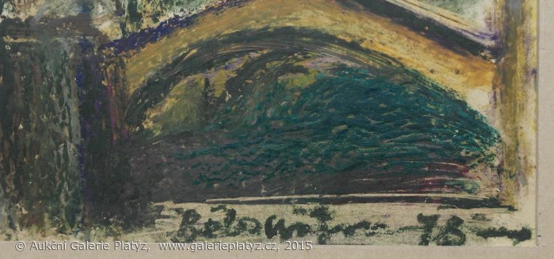 kombinovaná technika/karton, rozměr ve výřezu 29 x 41,5 cm, signováno vpravo dole, datace 78, paspartováno, zaskleno, rámováno, oděrky na rámu, původní stav