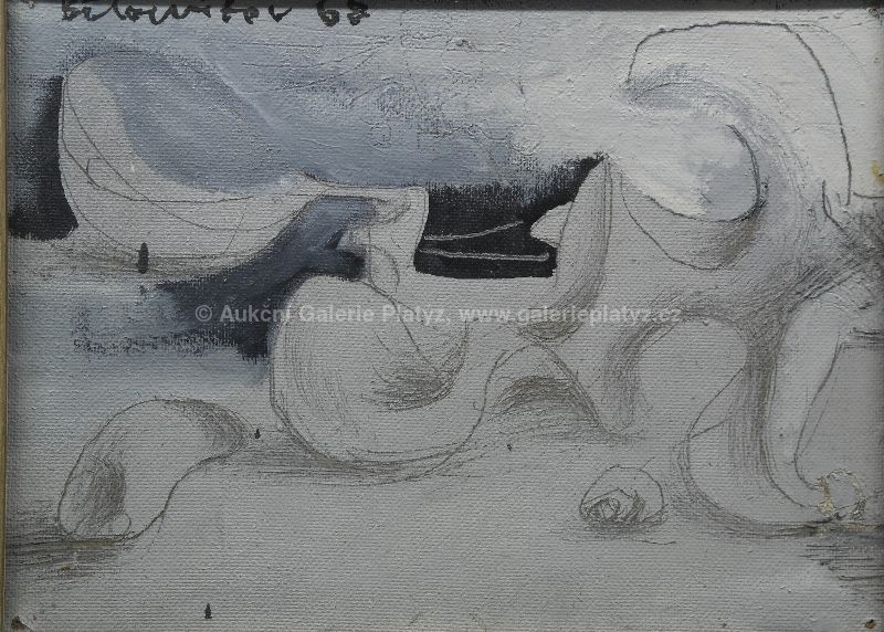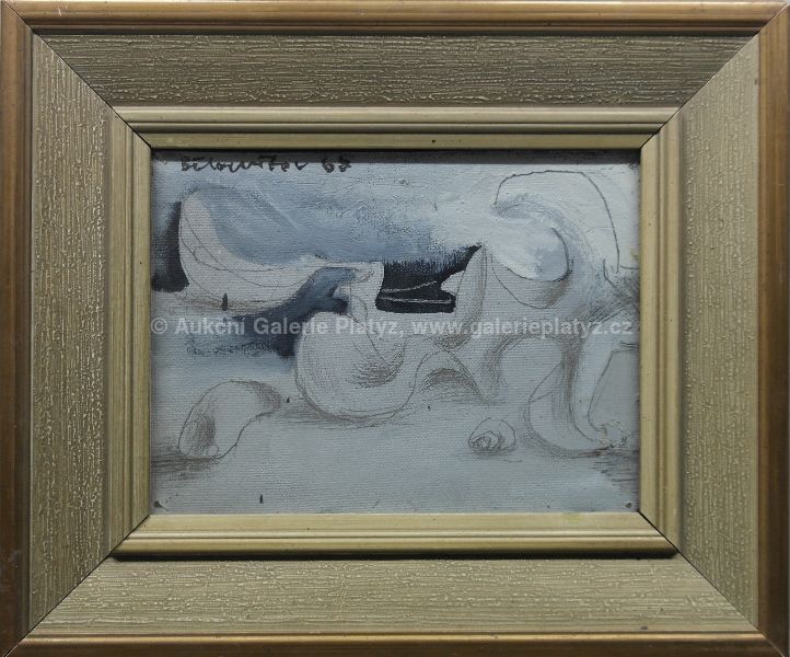 kombinovaná technika/sololit, rozměr 29 x 39 cm, signováno vlevo nahoře, datováno 68, zaskleno, oděrky na rámu, původní stav