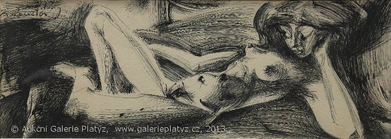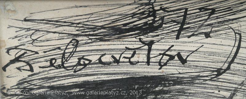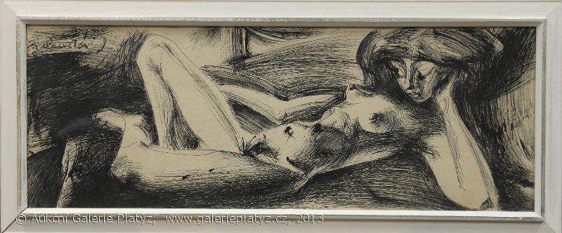 tuš na kartonu, rozměr malby 33 x 90 cm, signováno vlevo nahoře, datováno ´72, lehce zprohybaný karton, původní stav