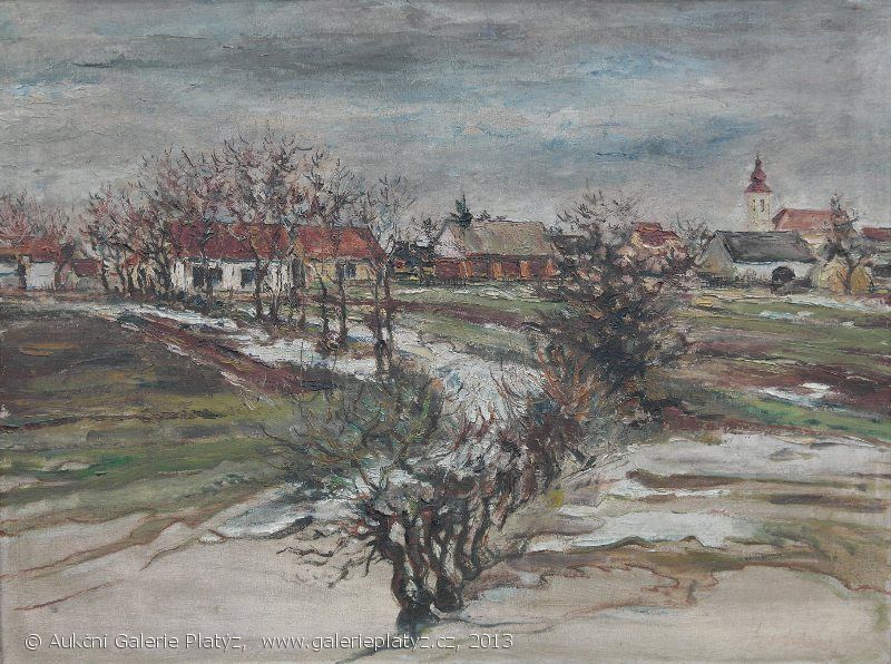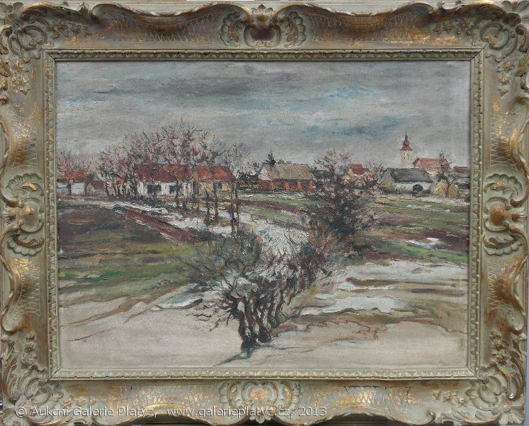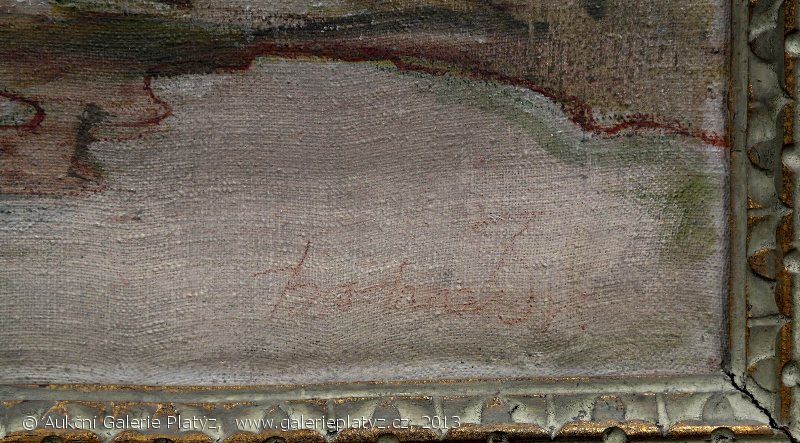 olej/plátno, rozměr plátna 60 x 80 cm, signováno vpravo dole špatně čitelné Boháček (?), drobné oděrky na rámu, původní stav