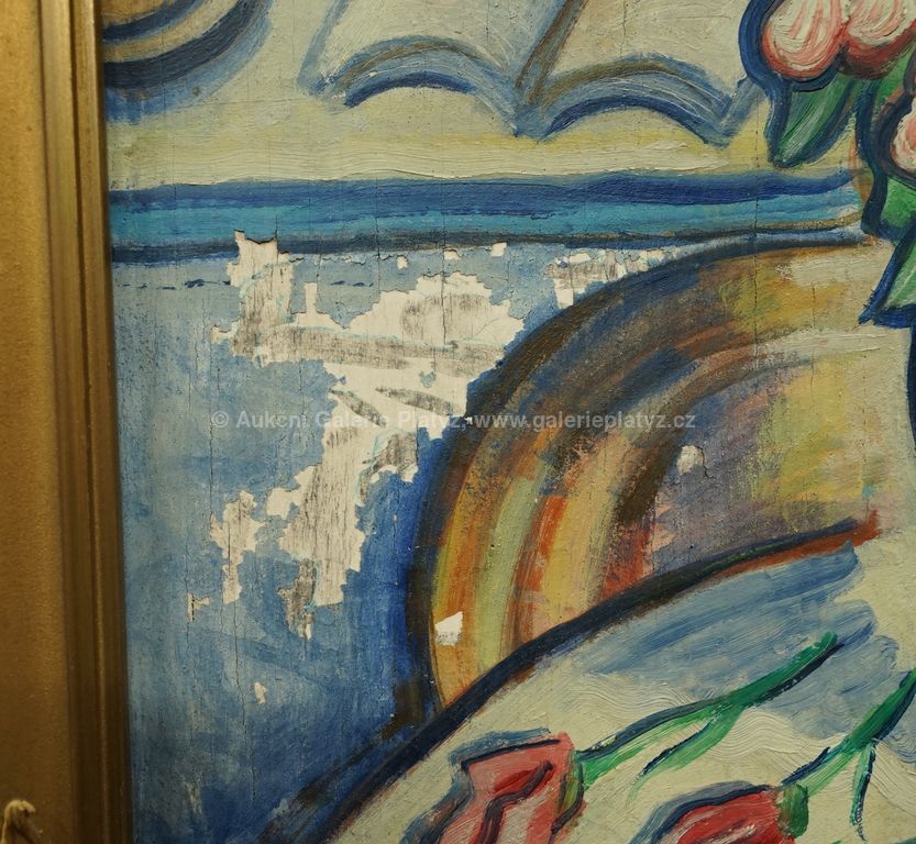 olej/překližka, rozměr 45 x 35 cm, signováno monogramem vlevo dole, oděrky na rámu, poškozená malba na několika místech