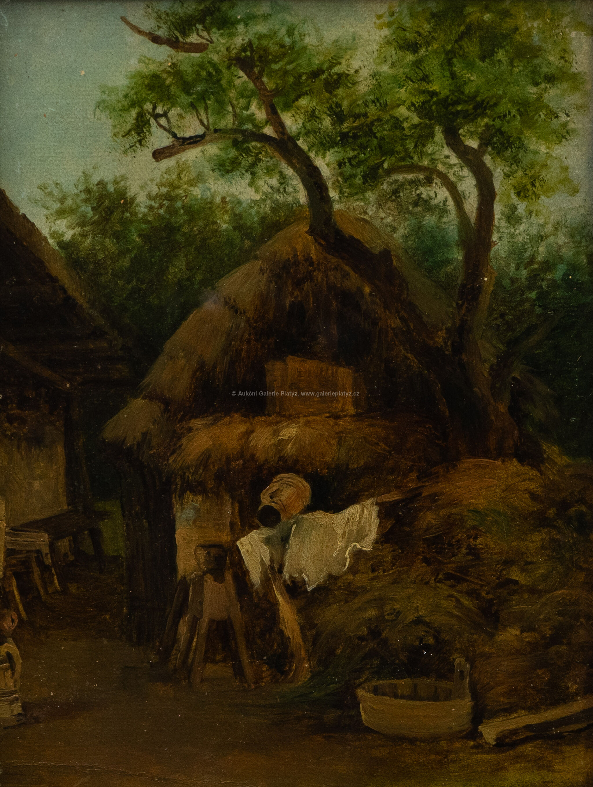 olej/karton, rozměr 26 x 20 cm, neznačeno, zaskleno, rámováno, poškozený rám, na levé straně oděrky v malbě