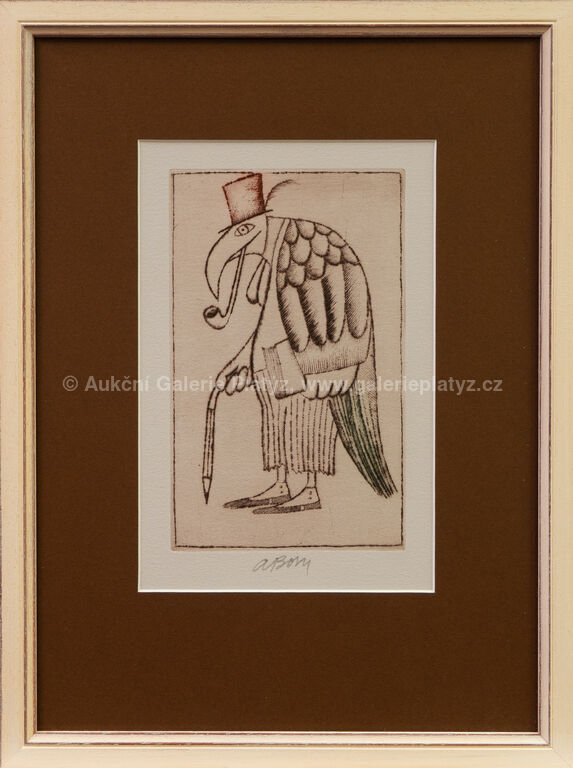 lept/papír, rozměr ve výřezu 23,5 x 15,5 cm, značeno ve spodní části, paspartováno, zaskleno, rámováno