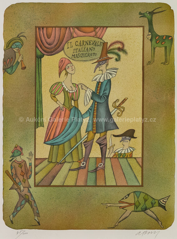 barevná litografie/papír, rozměr ve výřezu 47,5 x 36,5 cm, značeno a číslováno ve spodní části, paspartováno, zaskleno, rámováno