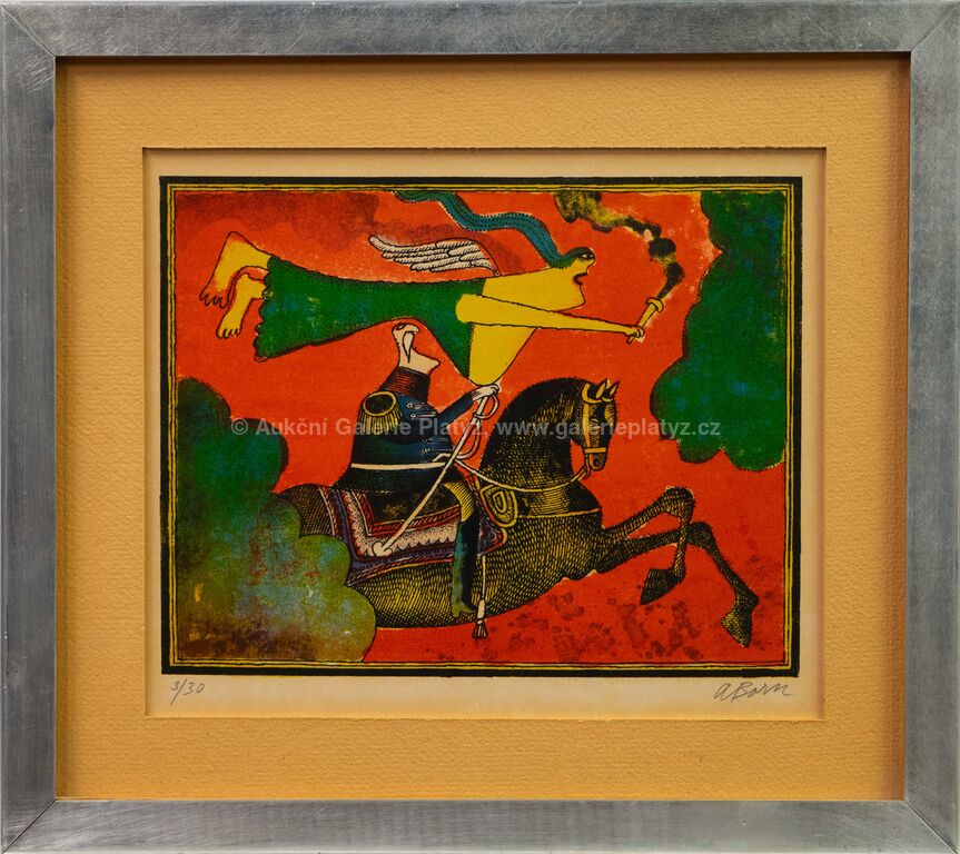 litografie/papír, rozměr ve výřezu 21 x 24,5 cm, značeno a číslováno ve spodní části, paspartováno, zaskleno, rámováno