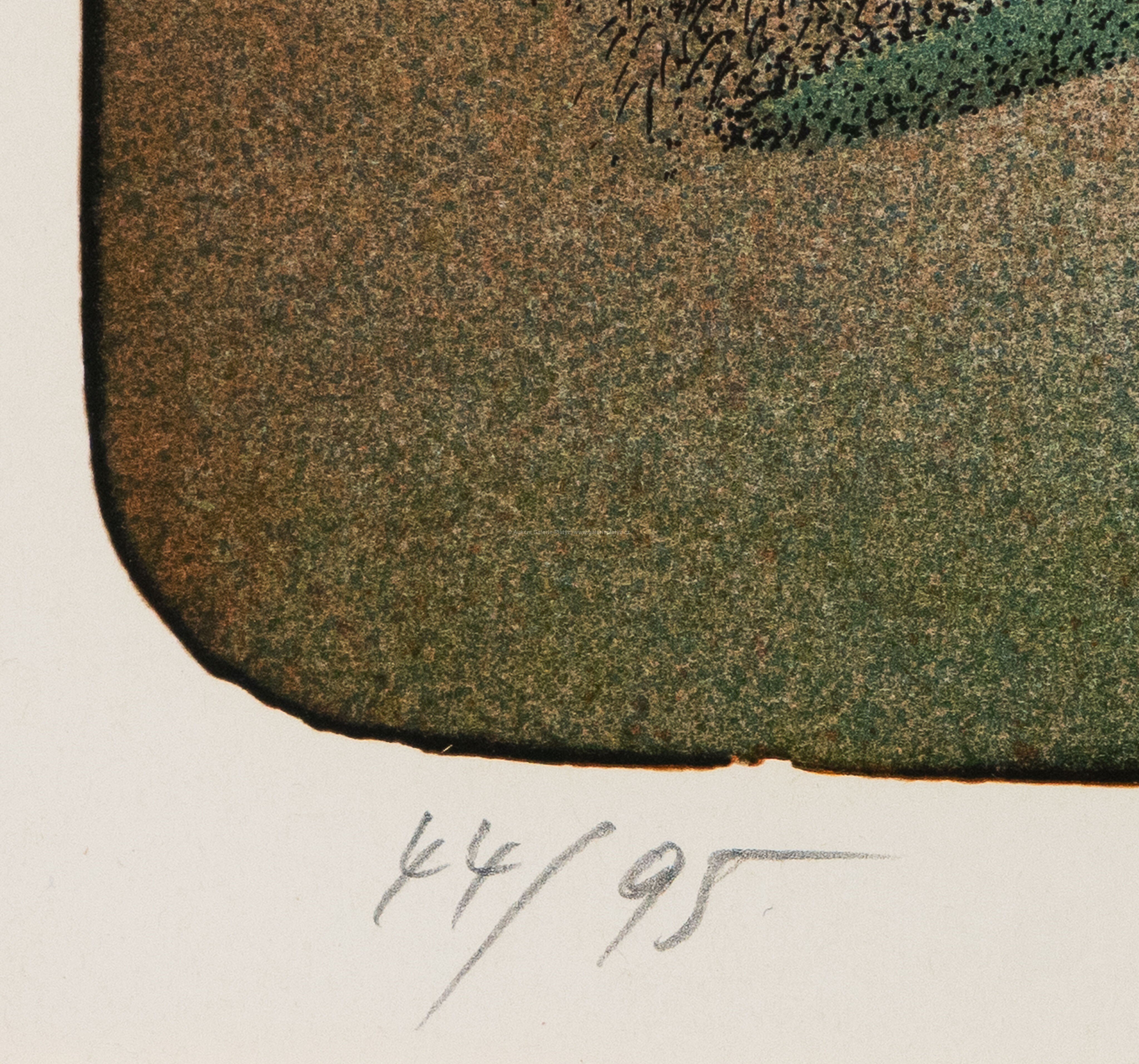 litografie/papír, rozměr ve výřezu 46 x 56 cm, značeno a číslováno ve spodní části, paspartováno, zaskleno, rámováno