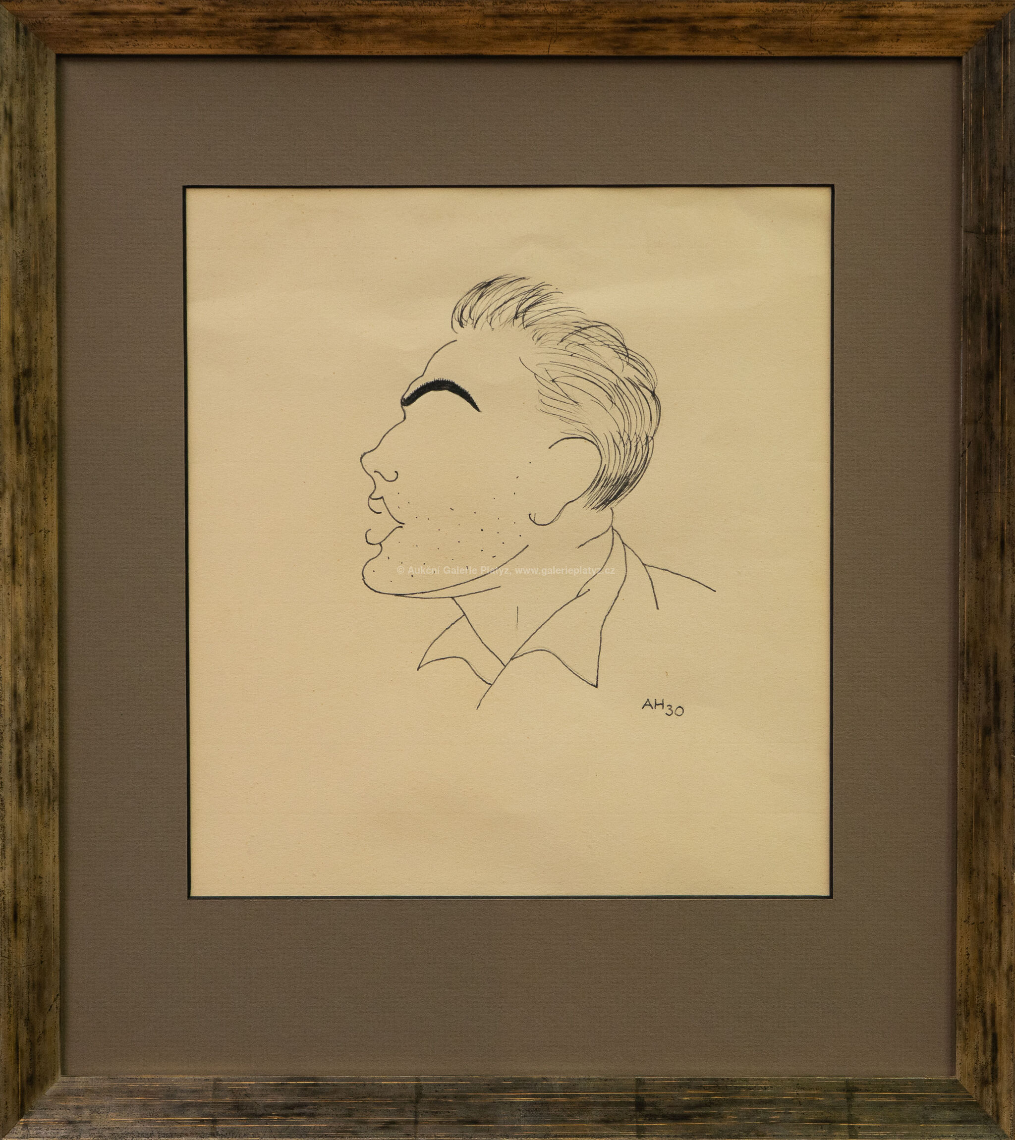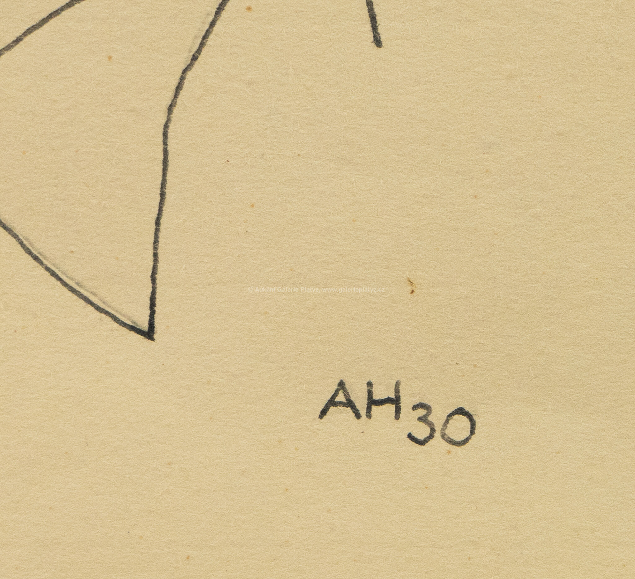 tuš/papír, rozměr ve výřezu 25 x 22,5 cm, značeno a datováno na pravé straně, paspartováno, zaskleno muzeálním sklem, rámováno