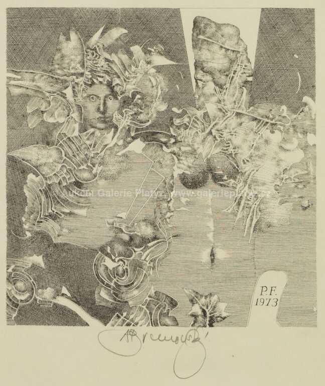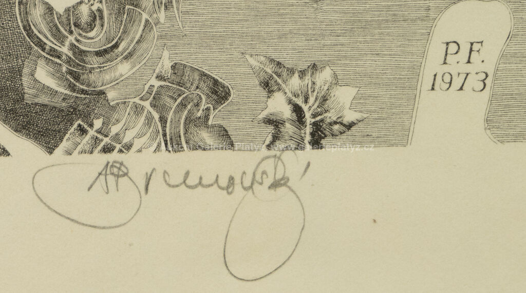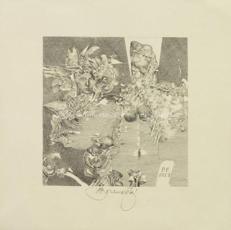 litografie/papír, rozměr listu 19,5 x 19,5 cm, značeno ve spodní části, volně loženo, publikováno v monografii autora Albín Brunovský - Kompletné grafické dielo 1960 - 1997 pod č. 372