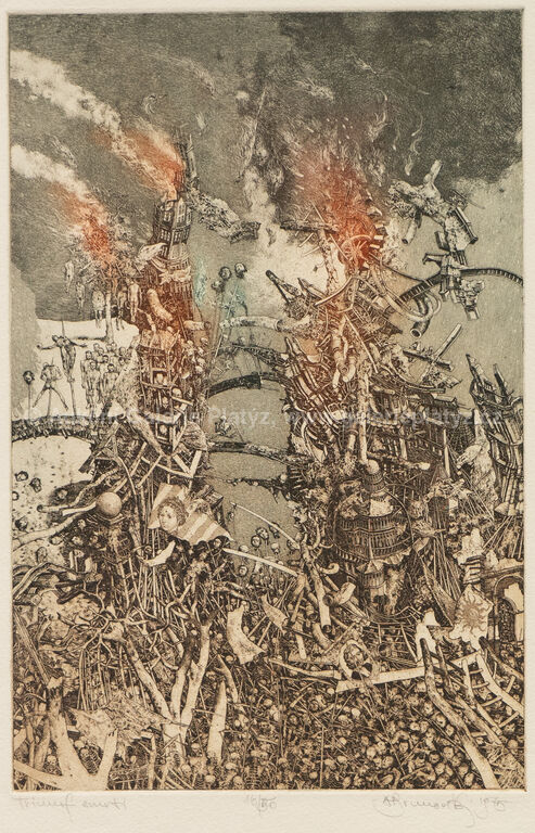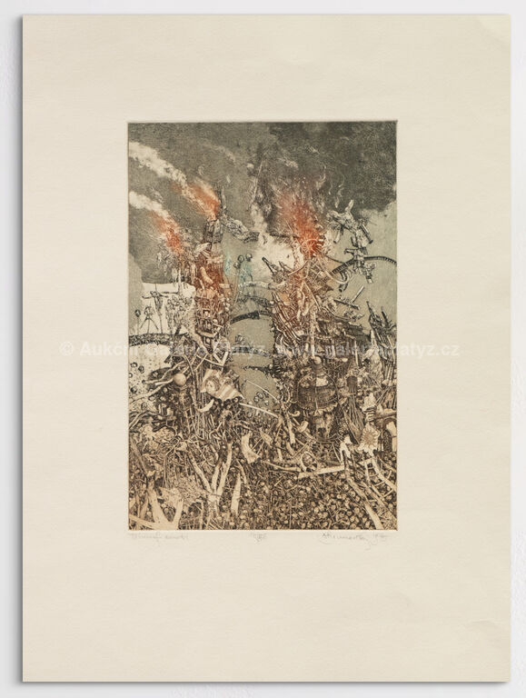 kolorovaný lept/papír, rozměr listu 50 x 37 cm, značeno, datováno, číslováno a popsáno ve spodní části, volně loženo, publikováno v monografii autora Albín Brunovský - Kompletné grafické dielo 1960 - 1997 pod č. 411