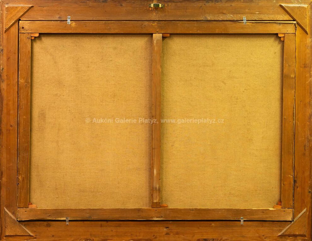 olej/plátno, rozměr 94 x 130 cm (VELKÝ FORMÁT), značeno vpravo dole, rámováno, poškozený rám, v minulosti odborně restaurováno
