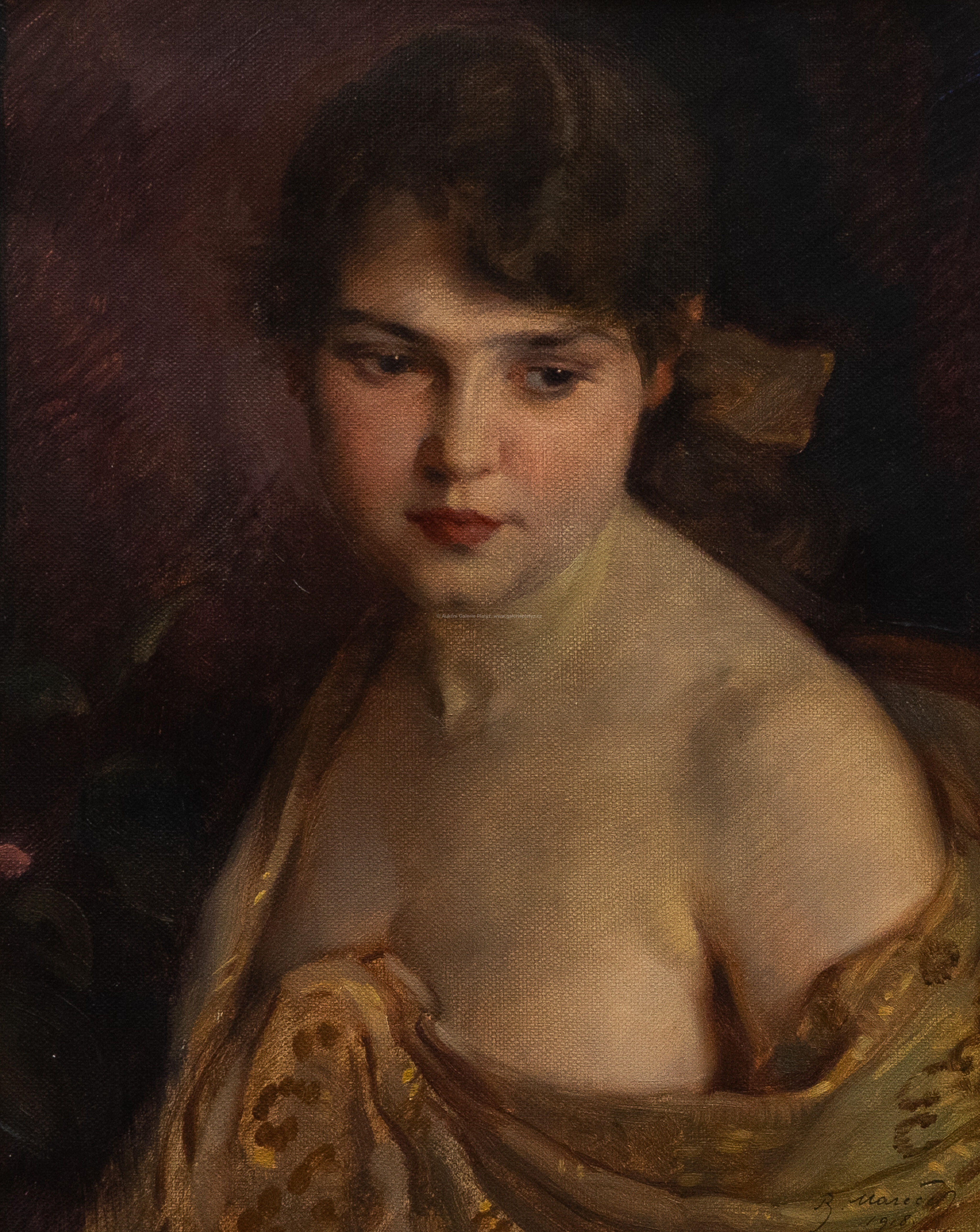 olej/plátno fixované na kartonu, rozměr ve výřezu 32 x 25 cm, značeno a datováno vpravo dole, paspartováno, zaskleno, rámováno, oděrky na rámu