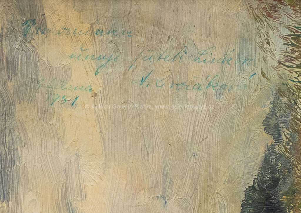 olej/karton, rozměr 17 x 25 cm, značeno vpravo dole, rámováno