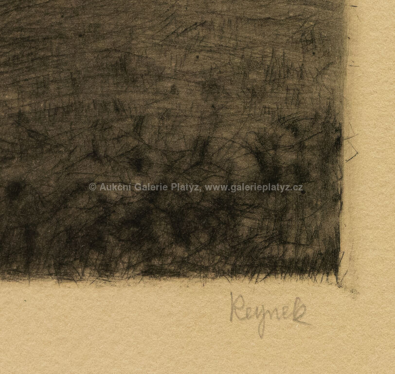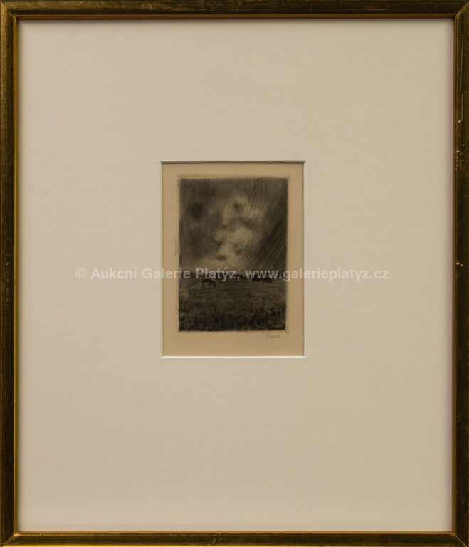 suchá jehla/papír, rozměr ve výřezu 13 x 9,5 cm, značeno vpravo dole, paspartováno, zaskleno, rámováno