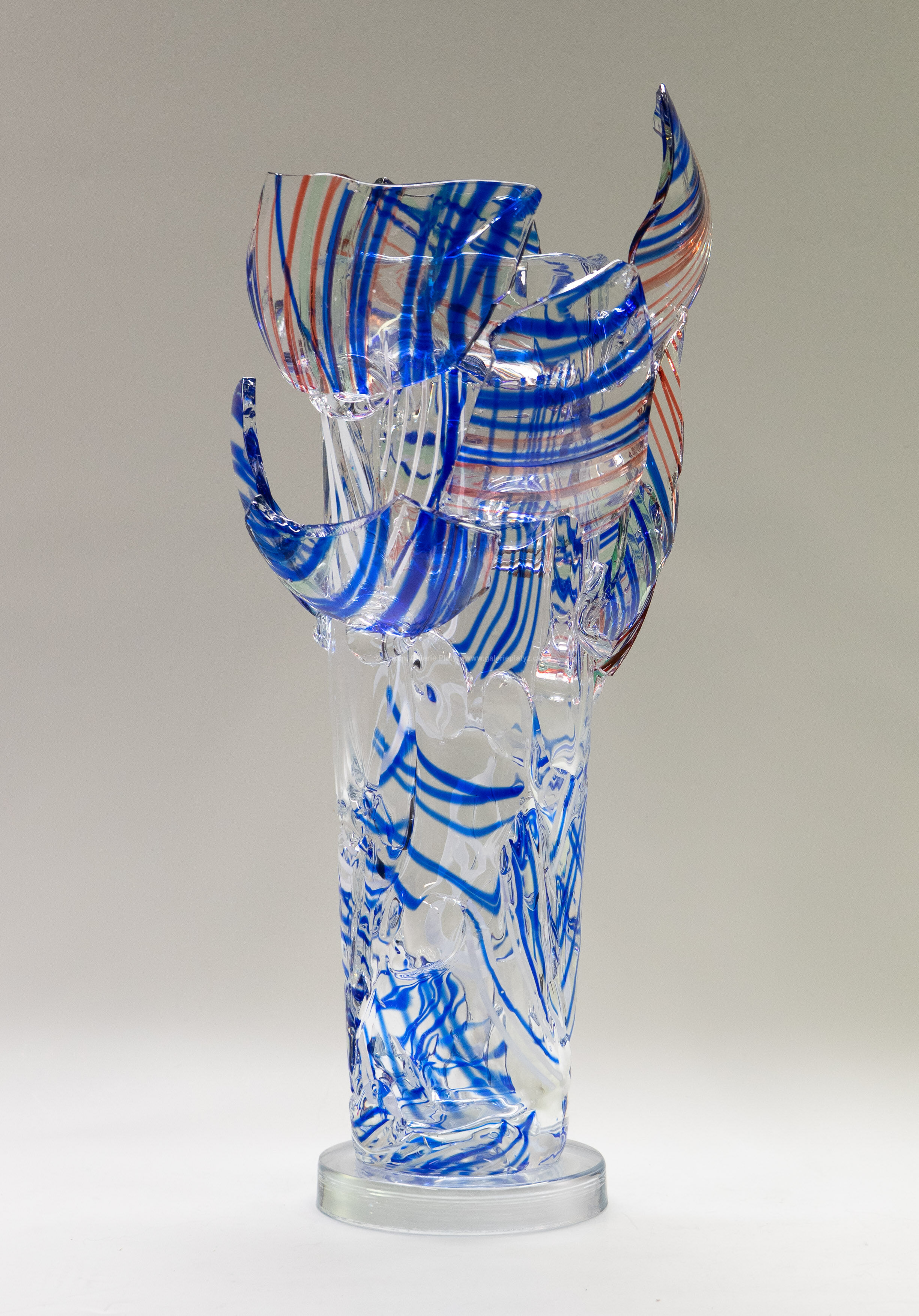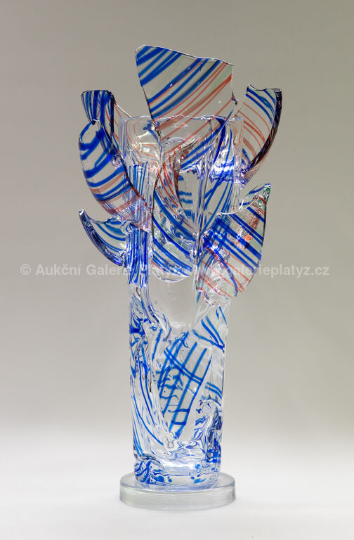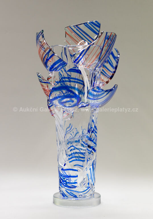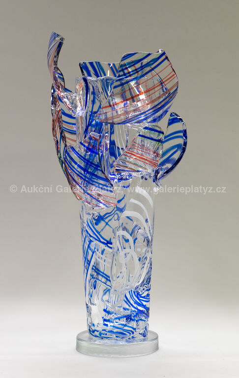 hutně tvarované sklo, výška vázy 51,5 cm, značeno a datováno ve střední části, součástí výstavy Bořek Šípek - Retrospektiva, Tančící dům, 13.11.2019 - 22.3.2020, přiložen Certifikát pravosti vystavený původním prodejcem