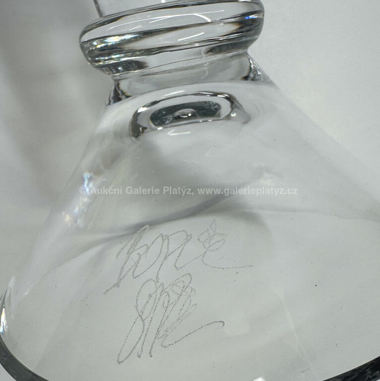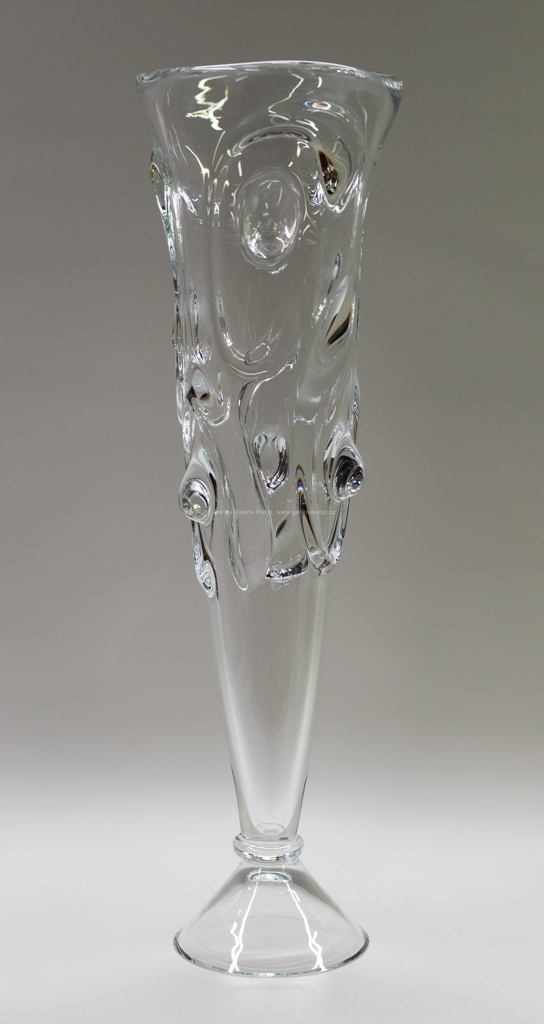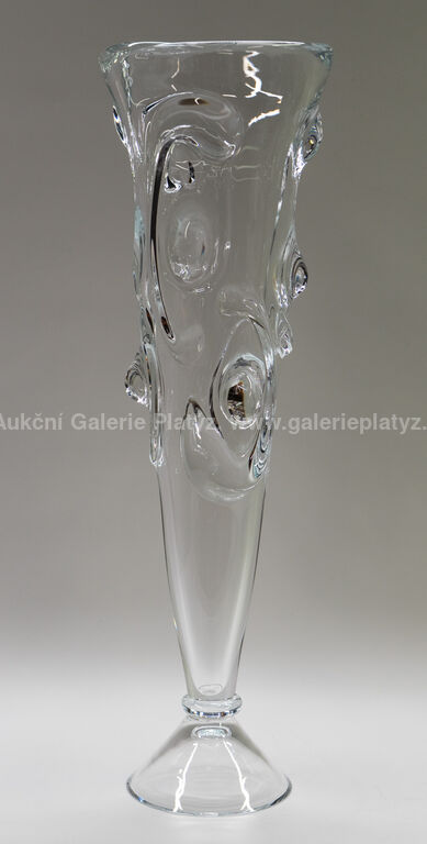 hutně tvarované sklo, výška 59,5 cm, průměr horní části 19 cm, ve spodní části rytá signatura, součástí výstavy Bořek Šípek - Retrospektiva, Tančící dům, 13.11.2019 - 22.3.2020