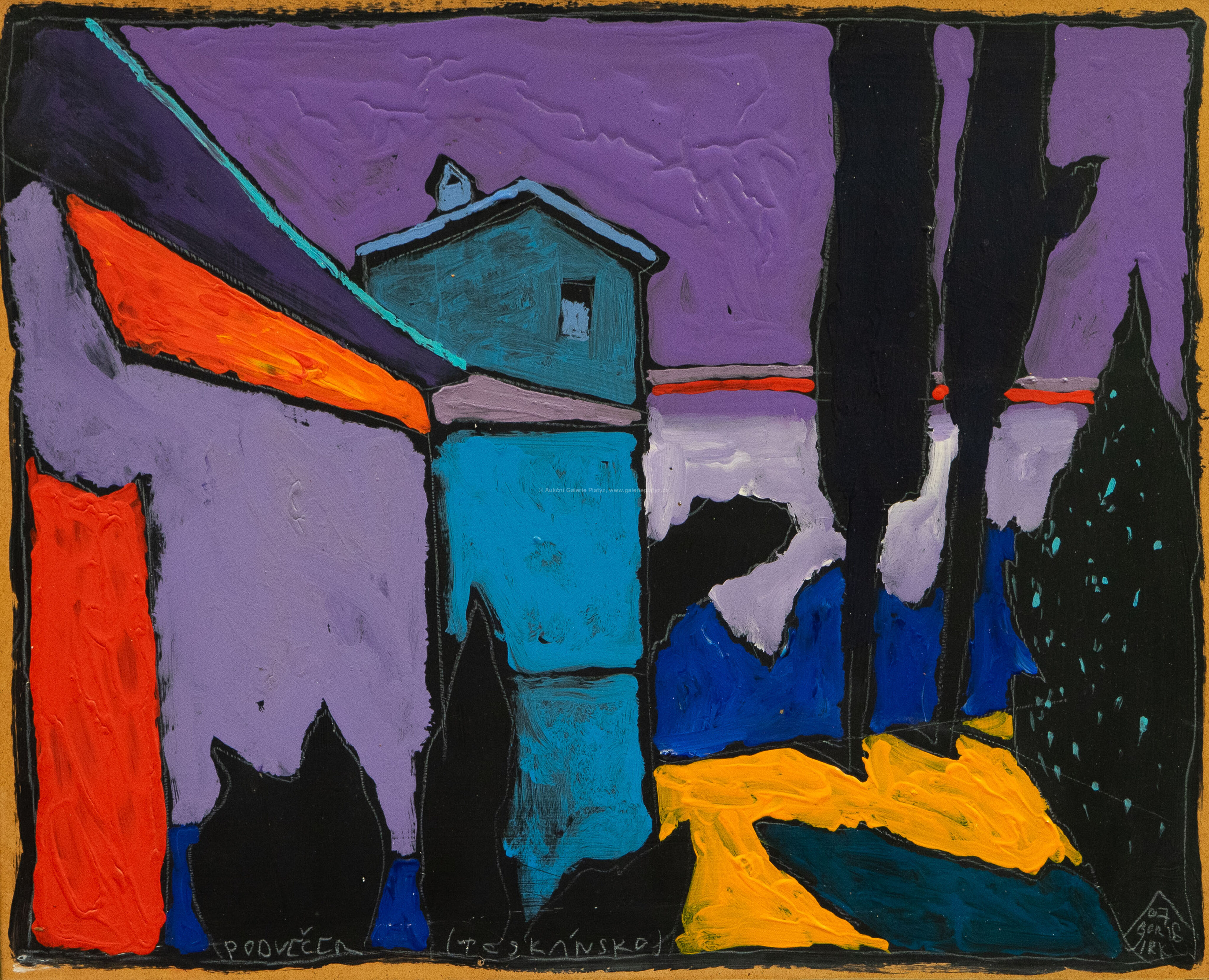 akryl/sololit, rozměr 55 x 68 cm, značeno, datováno a popsáno ve spodní části, rámováno