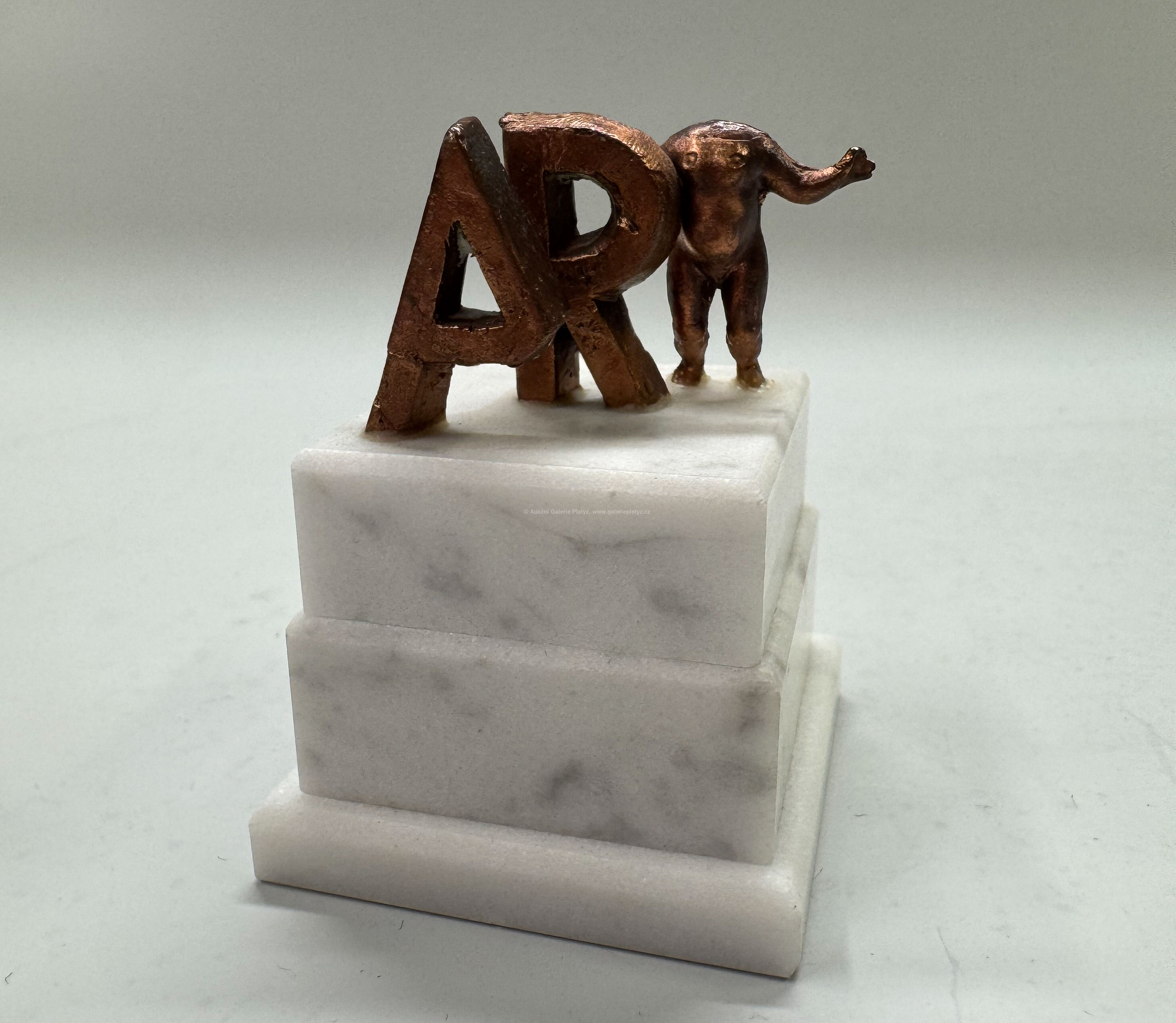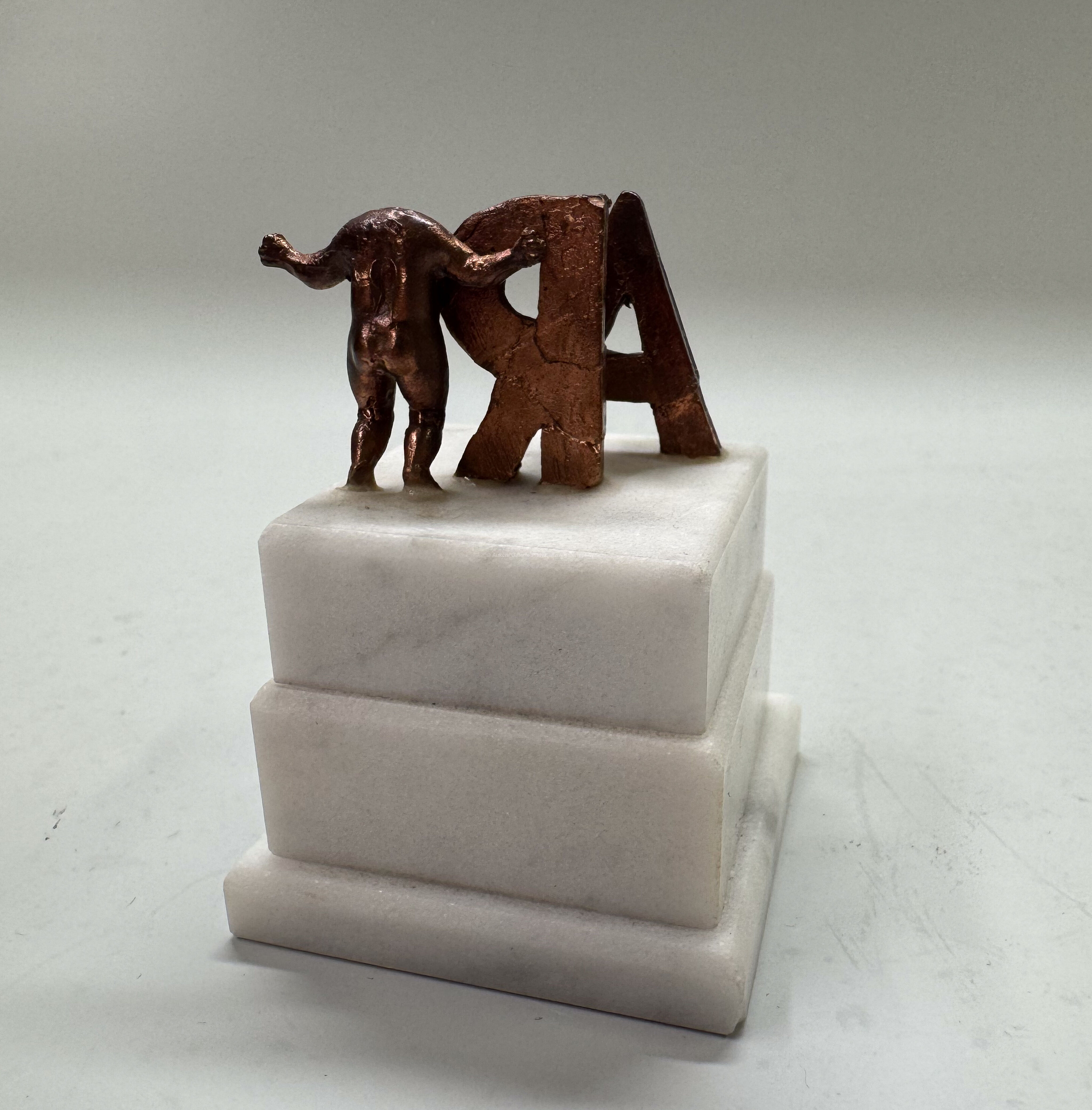 bronzová plastika na mramorovém podstavci, celkový rozměr 5,5 x 4 x 4 cm, neznačeno