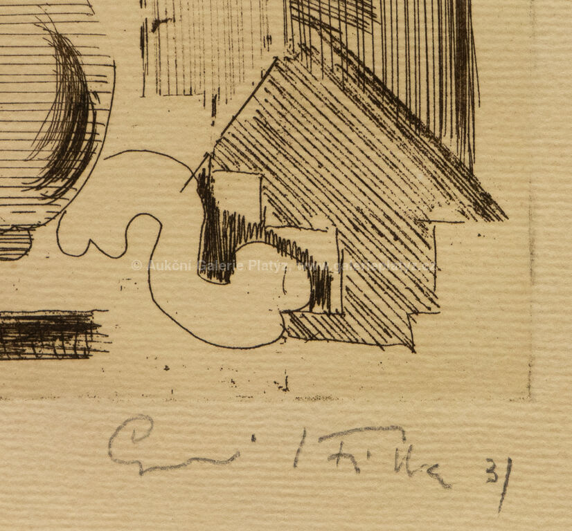 lept/papír, rozměr ve výřezu 26,5 x 16,5 cm, značeno a datováno vpravo dole tužkou, paspartováno, zaskleno, rámováno
