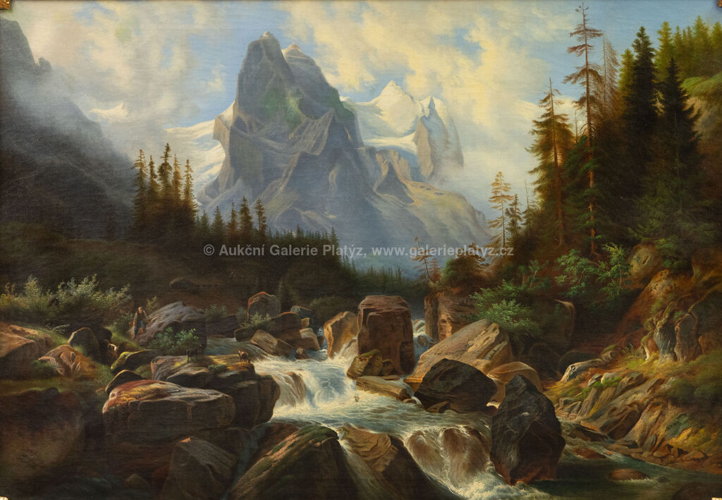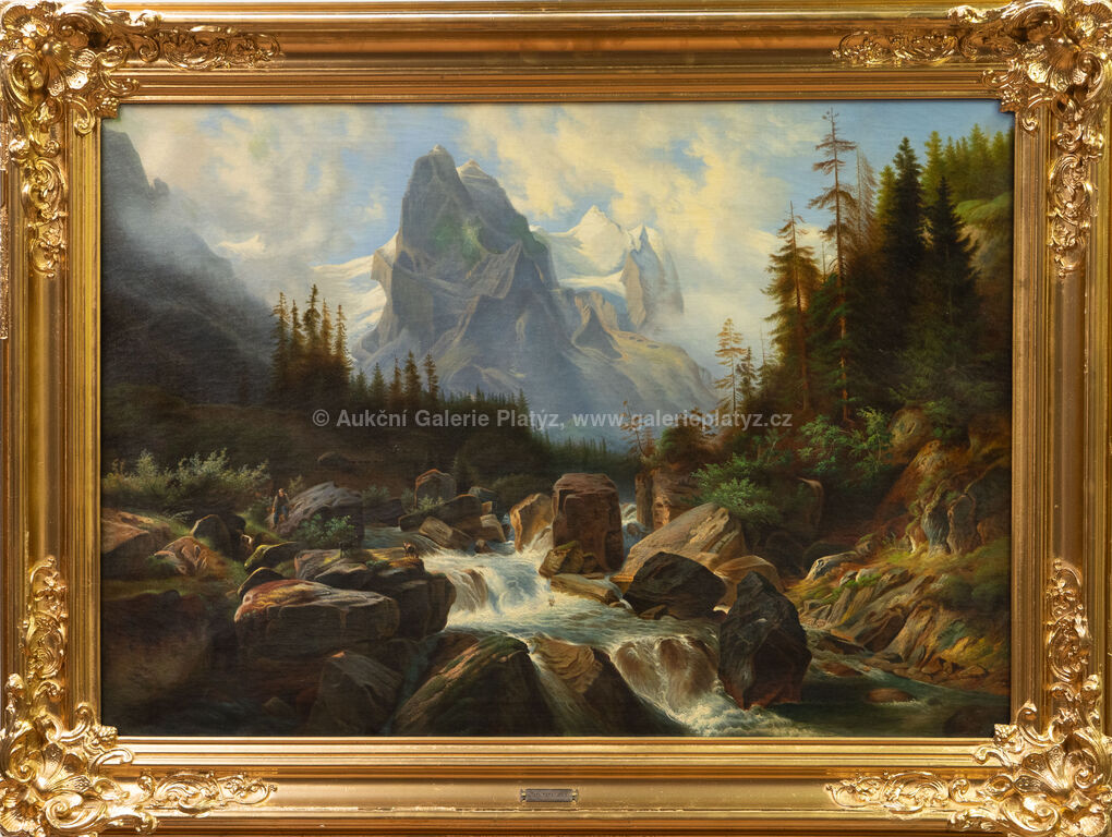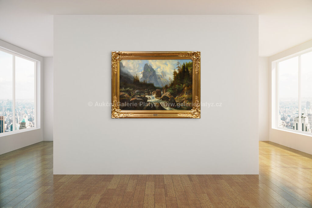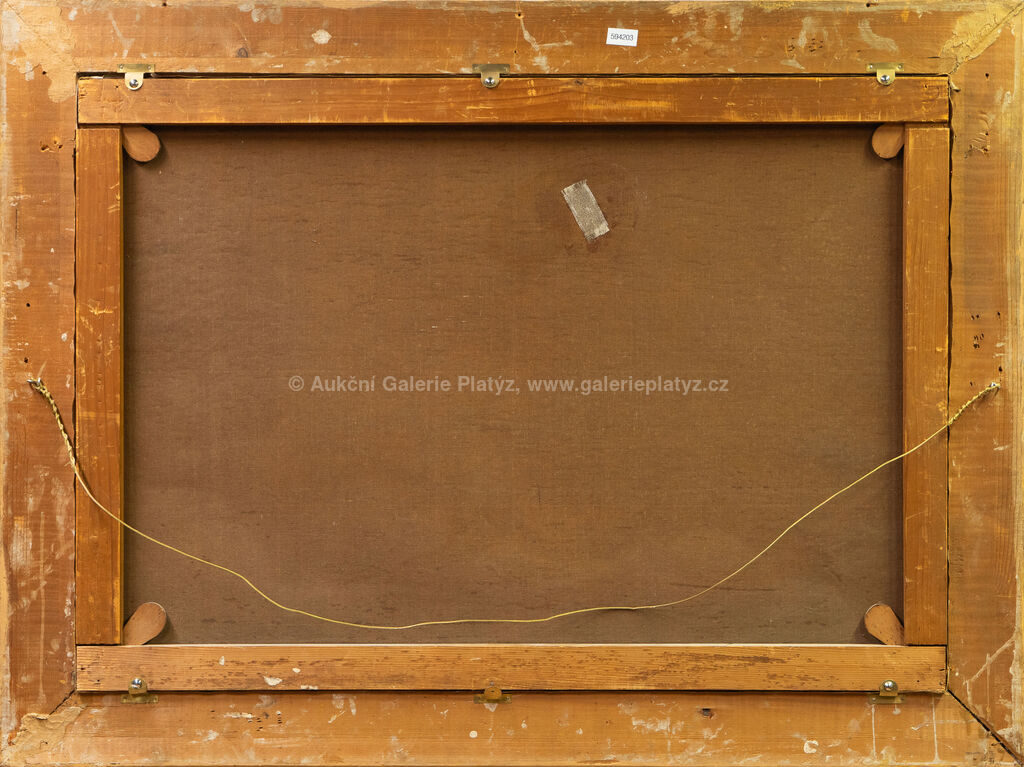 olej/plátno, rozměr 69 x 98 cm (VELKÝ FORMÁT), neznačeno, rámováno, poškozený rám, v minulosti restaurováno, přiloženo potvrzení pravosti vystavené PhDr. Mgr. Michaelem Zachařem