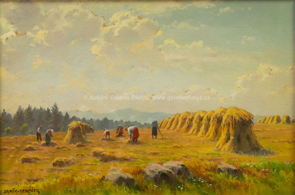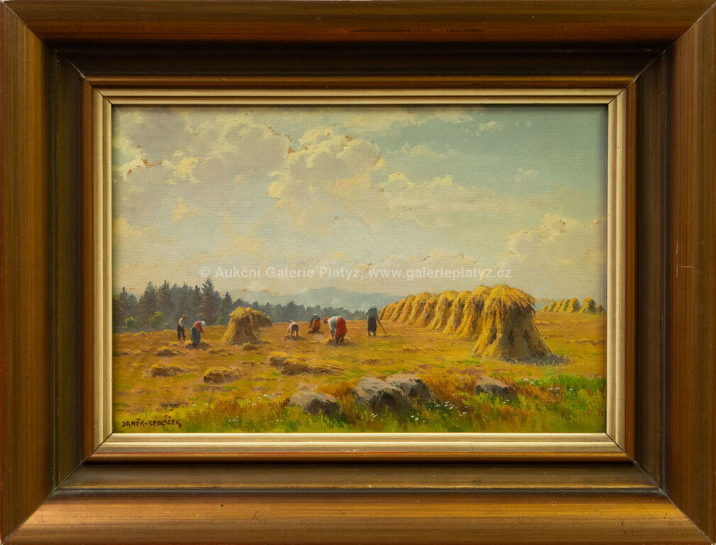olej/karton, rozměr 27 x 41 cm, značeno vlevo dole, zaskleno, rámováno, poškozený rám, na několika místech zvlněný karton