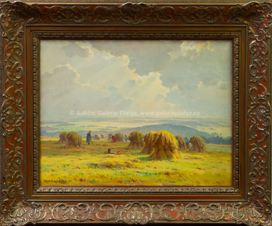 olej/karton, rozměr 50 x 65 cm, značeno vlevo dole, zaskleno, rámováno, poškozený rám