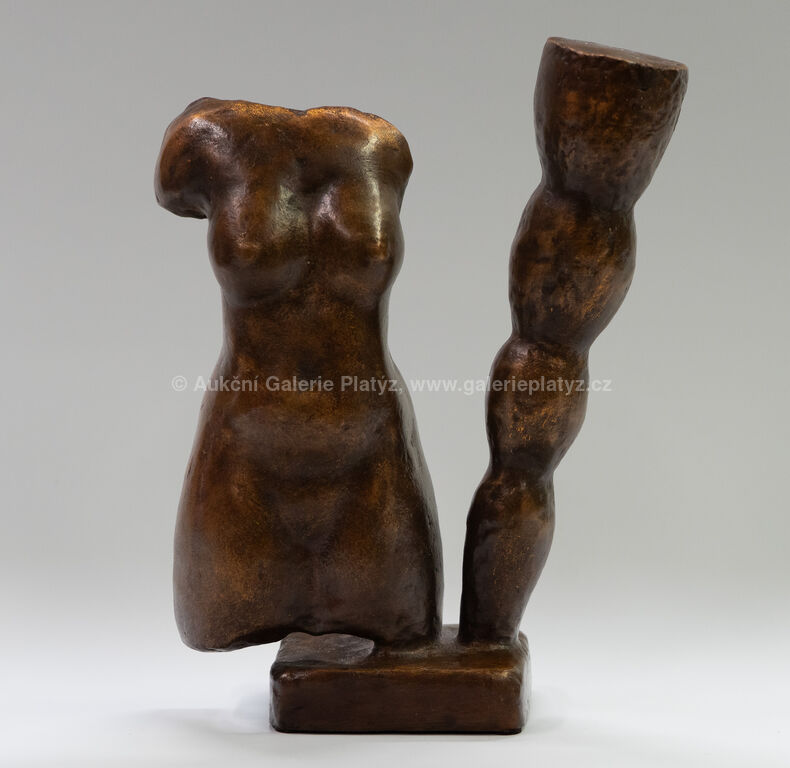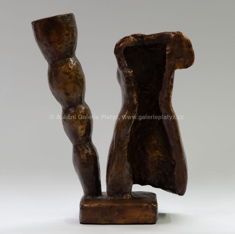 bronzová plastika, patinovaný bronz, rozměr 22 x 17 x 7 cm, značeno a datováno na plintu, vytvořen pouze jeden kus