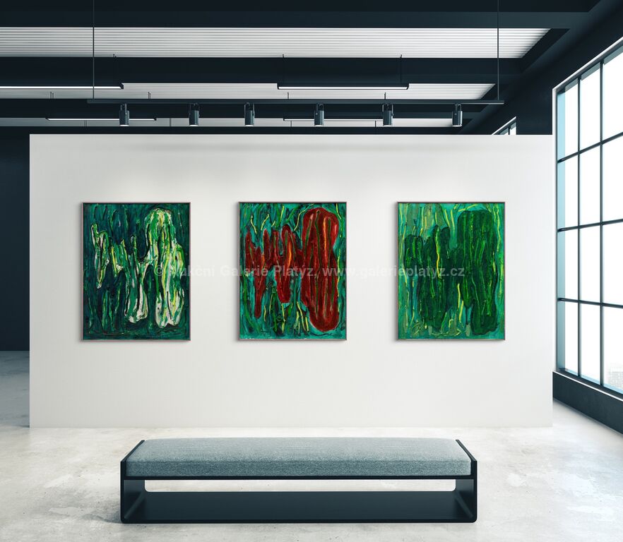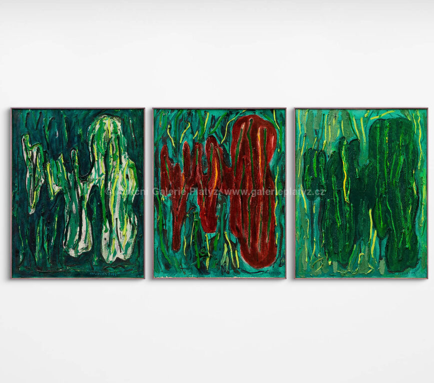 olej/plátno, 3 x rozměr 90 x 70 cm, značeno a datováno ve spodní části (obr. 1), značeno vpravo dole (obr. 2 a 3), 3 x značeno a popsáno na zadní straně, olištováno