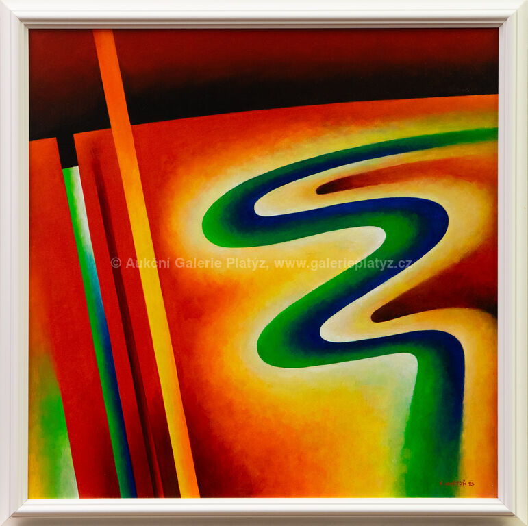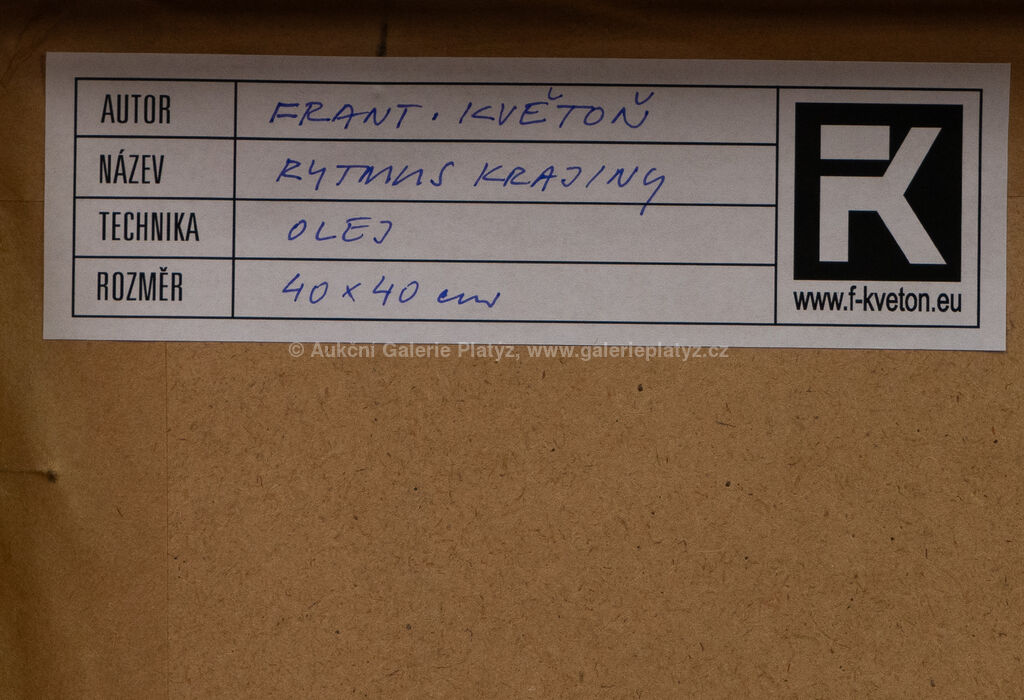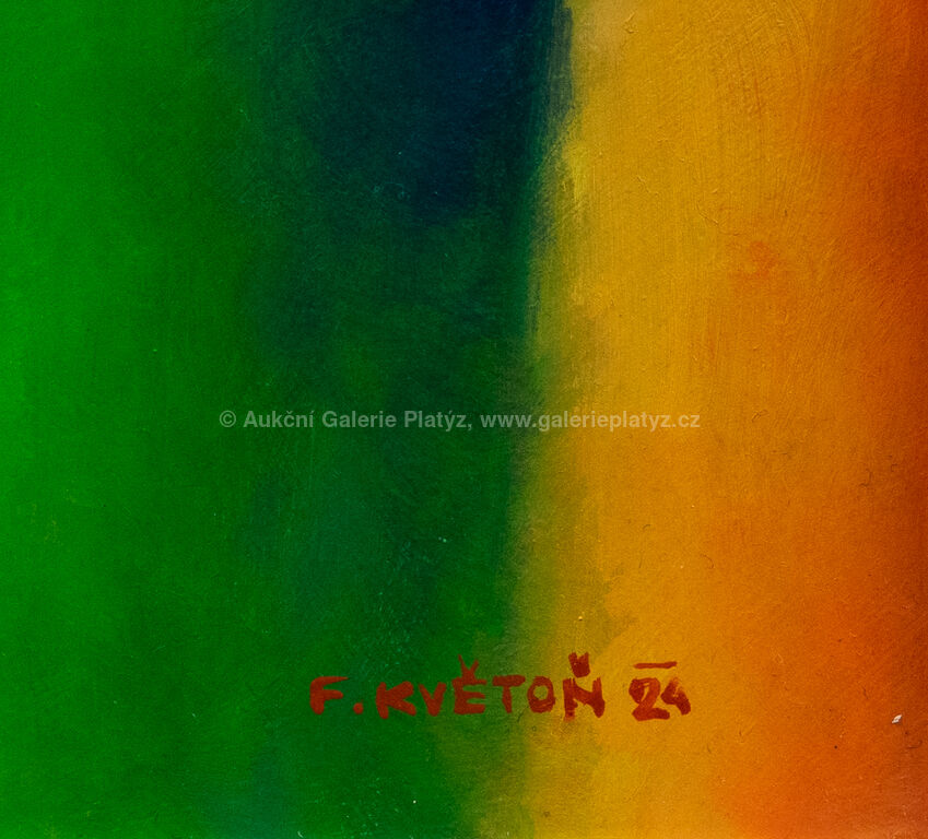 olej/sololit, rozměr 40 x 40 cm, značeno a datováno vpravo dole, rámováno, publikováno ve výstavním katalogu Jiří Holík, František Květoň, Artrium galerie