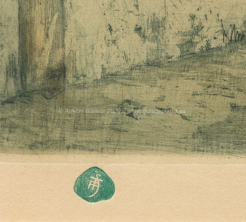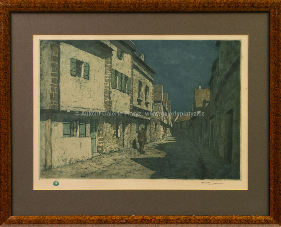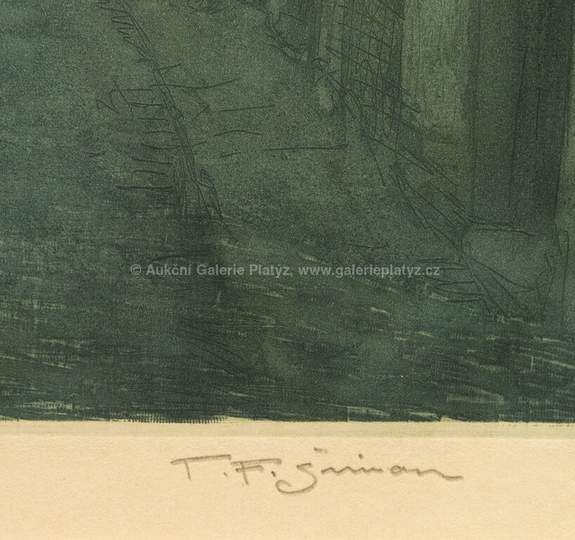 barevný lept/papír, rozměr ve výřezu 32 x 44 cm, značeno vpravo dole, autorská pečeť vlevo dole, značeno a datováno ve spodní části v tisku, paspartováno, zaskleno, rámováno, uvedeno v soupisu autorova díla The Graphic Work of T. F. Šimon pod č. 101