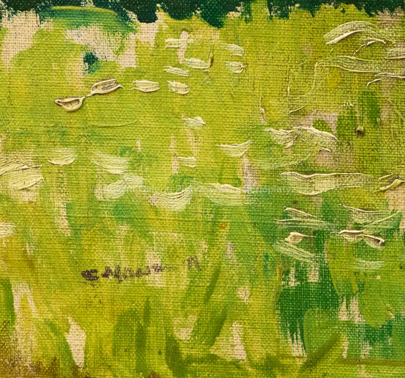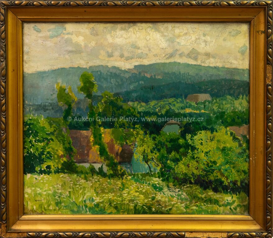 olej/plátno fixované na kartonu, rozměr 60 x 70 cm, značeno vlevo dole, rámováno, poškozený rám