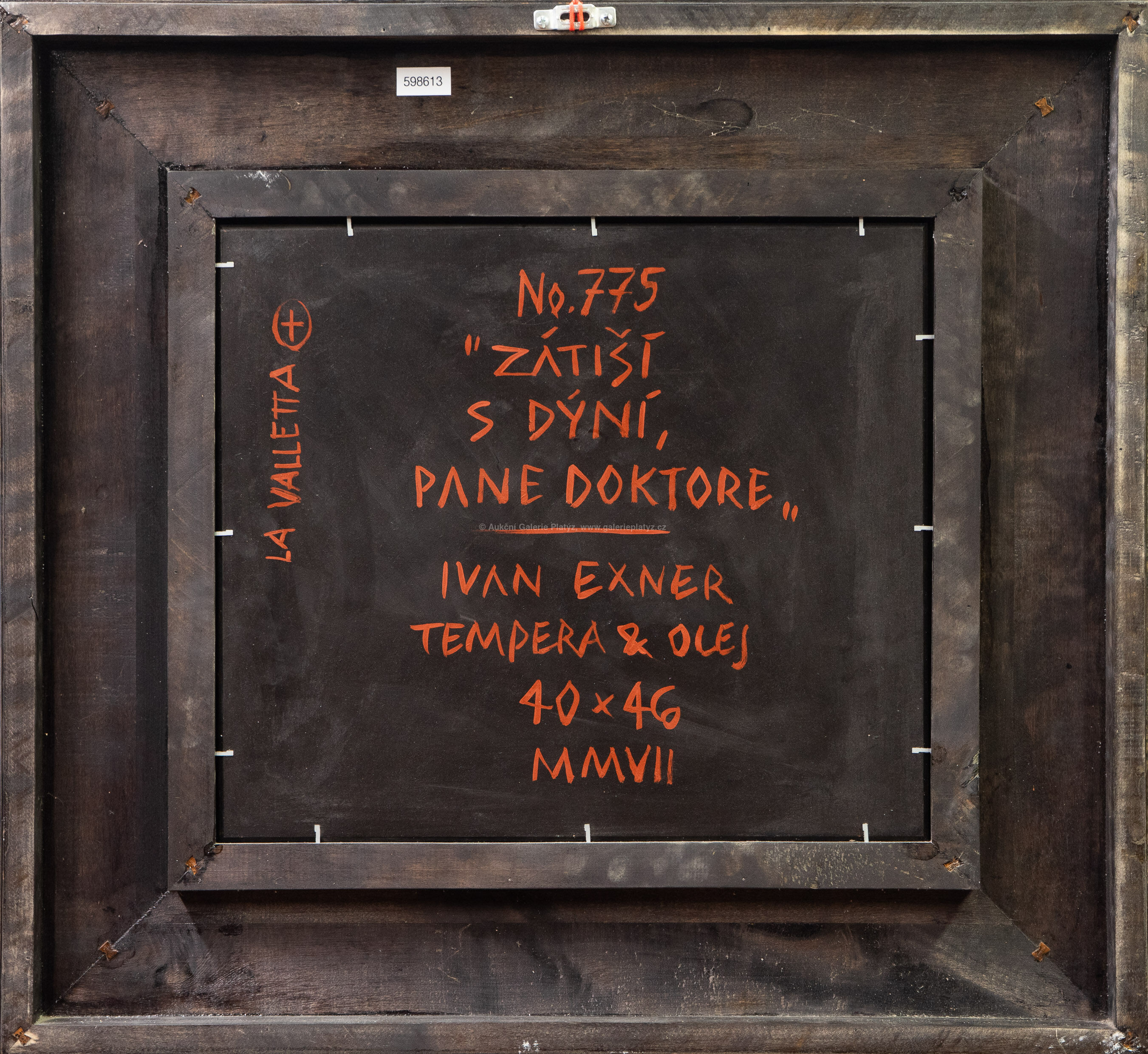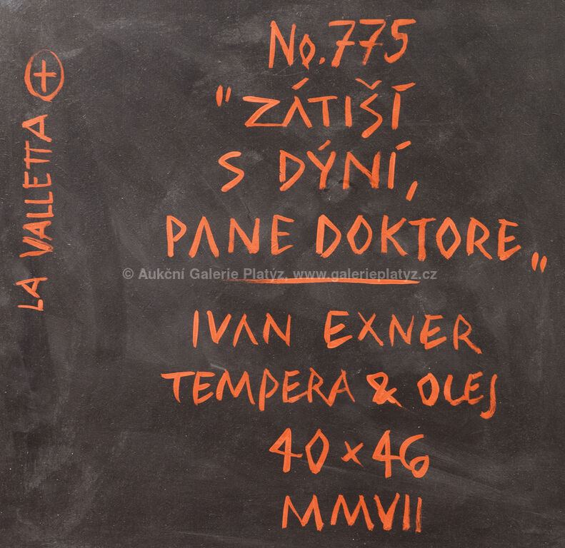 kombinovaná technika, tempera/olej/dřevovláknitá deska, rozměr 40 x 46 cm, značeno a datováno vpravo dole, rámováno, publikováno na str. 372 v autorově monografii Ivan Exner, Obrazy z let 1983 - 2014, vyd. S.U.V. Mánes 2015