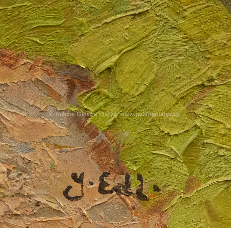 olej/karton, rozměr 50 x 35 cm, značeno vpravo dole, rámováno, oděrky na rámu