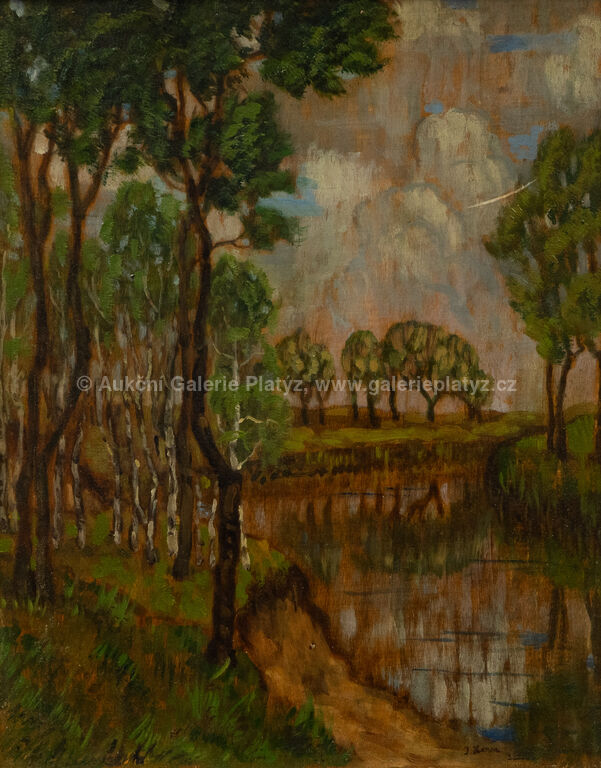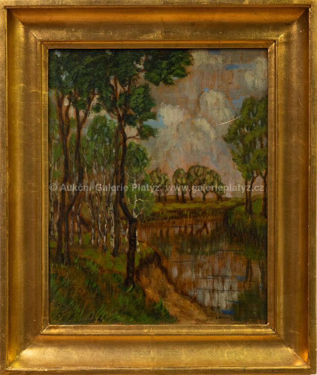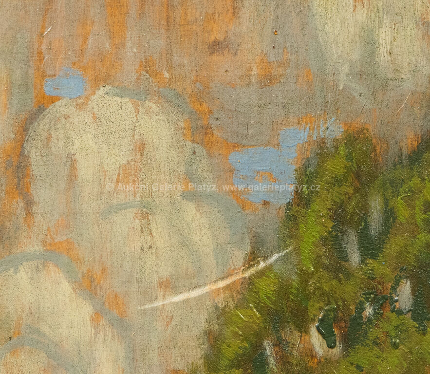 olej/dřevěná deska, rozměr 43 x 34 cm, značeno a datováno vpravo dole, rámováno, oděrky na rámu, v pravém horním rohu vryp (viz foto)