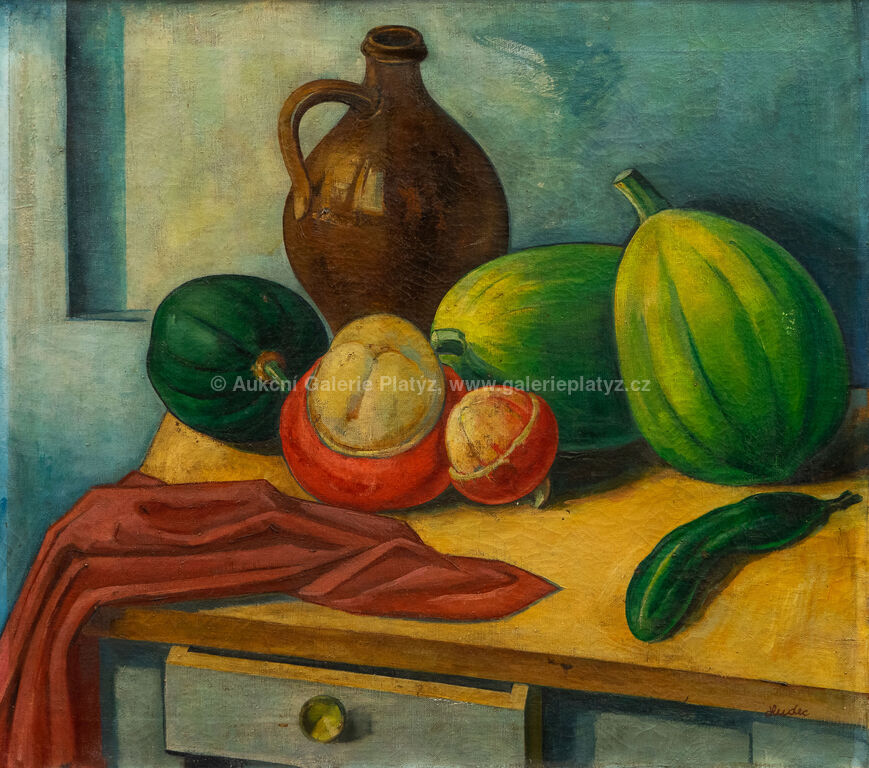 olej/plátno, rozměr 66 x 75 cm, značeno vpravo dole, rámováno, na několika místech malba krakelovaná