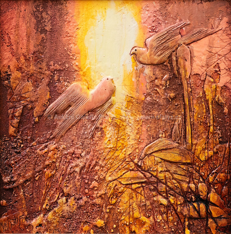 strukturální malba/sololit, rozměr 31 x 31 cm, značeno vlevo dole, rámováno