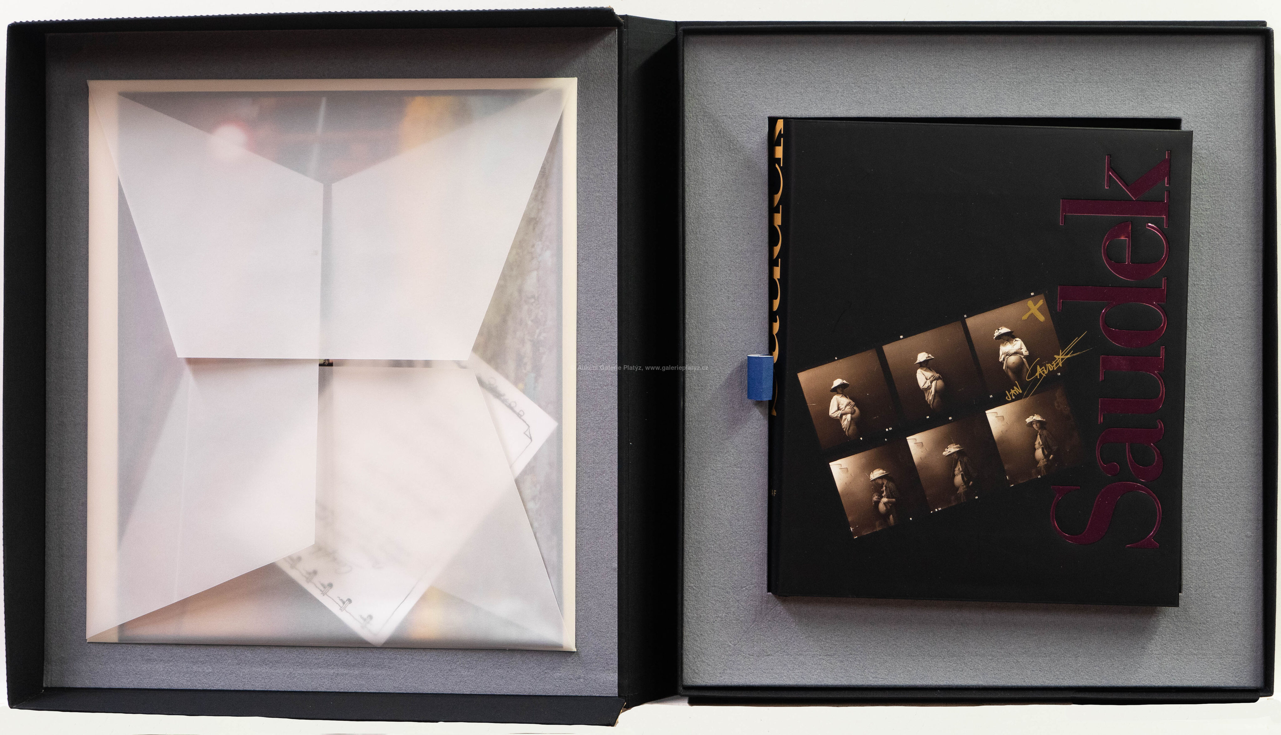 limitovaná edice monografie Saudek - fotograf český v ručně vyrobeném pouzdru s vloženou originální podepsanou a číslovanou fotografií s certifikátem s hologramem, rozměr knihy 34 x 28 x 6 cm, rozměr fotografie 33 x 40 cm