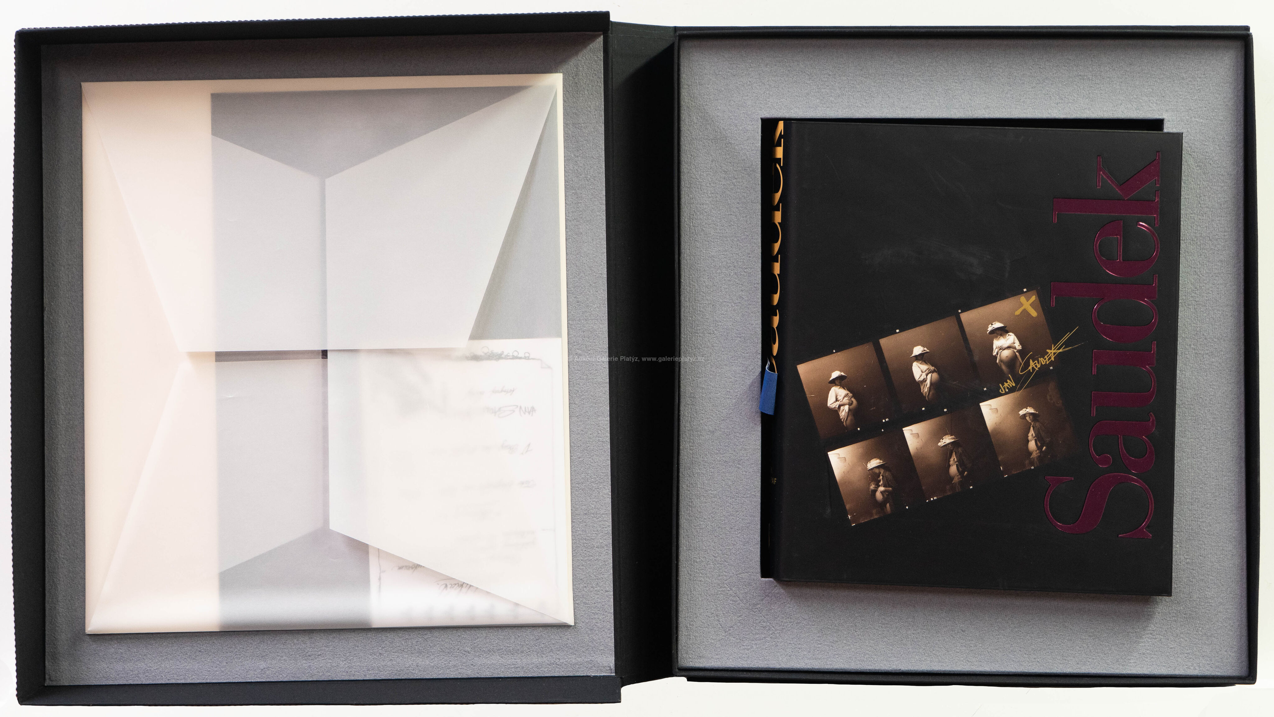 limitovaná edice monografie Saudek - fotograf český v ručně vyrobeném pouzdru s vloženou originální podepsanou a číslovanou fotografií s certifikátem s hologramem, rozměr knihy 34 x 28 x 6 cm, rozměr fotografie 33 x 40 cm