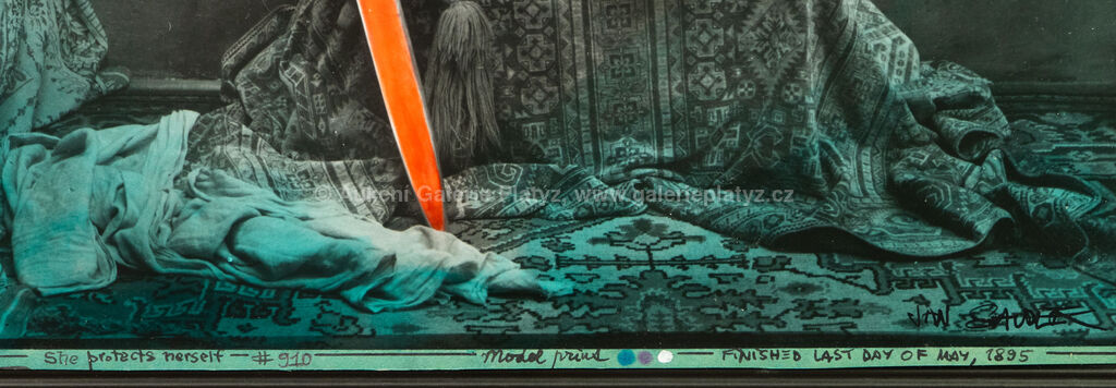 kolorovaná fotografie/papír, rozměr listu 30 x 30 cm, značeno vpravo dole, datováno, číslováno a popsáno po obvodu, zaskleno, rámováno, oděrky na rámu