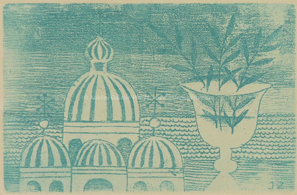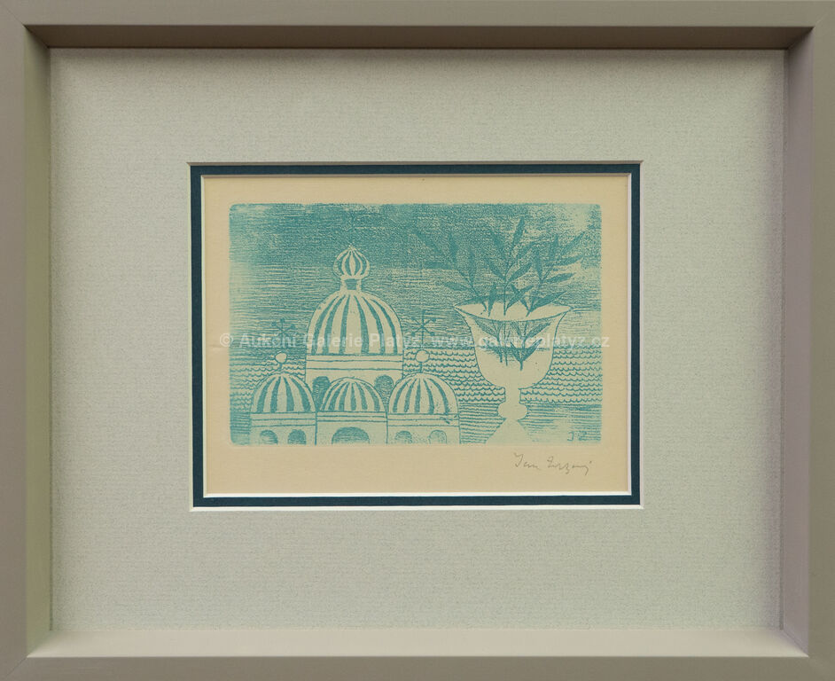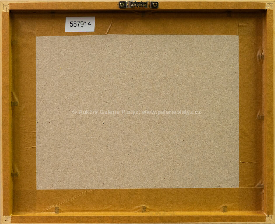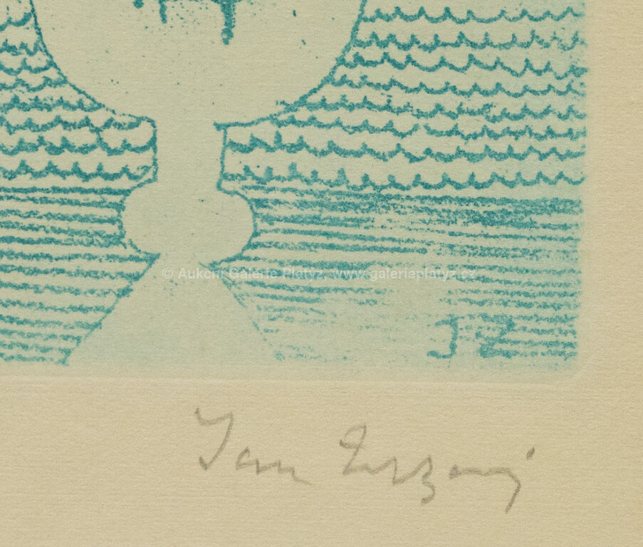 barevný lept/papír, rozměr ve výřezu 12,5 x 17 cm, značeno v tisku vpravo dole, značeno tužkou vpravo dole, paspartováno, zaskleno, rámováno, uvedeno v soupisu Grafické dílo Jana Zrzavého, František Dvořák, č. 40