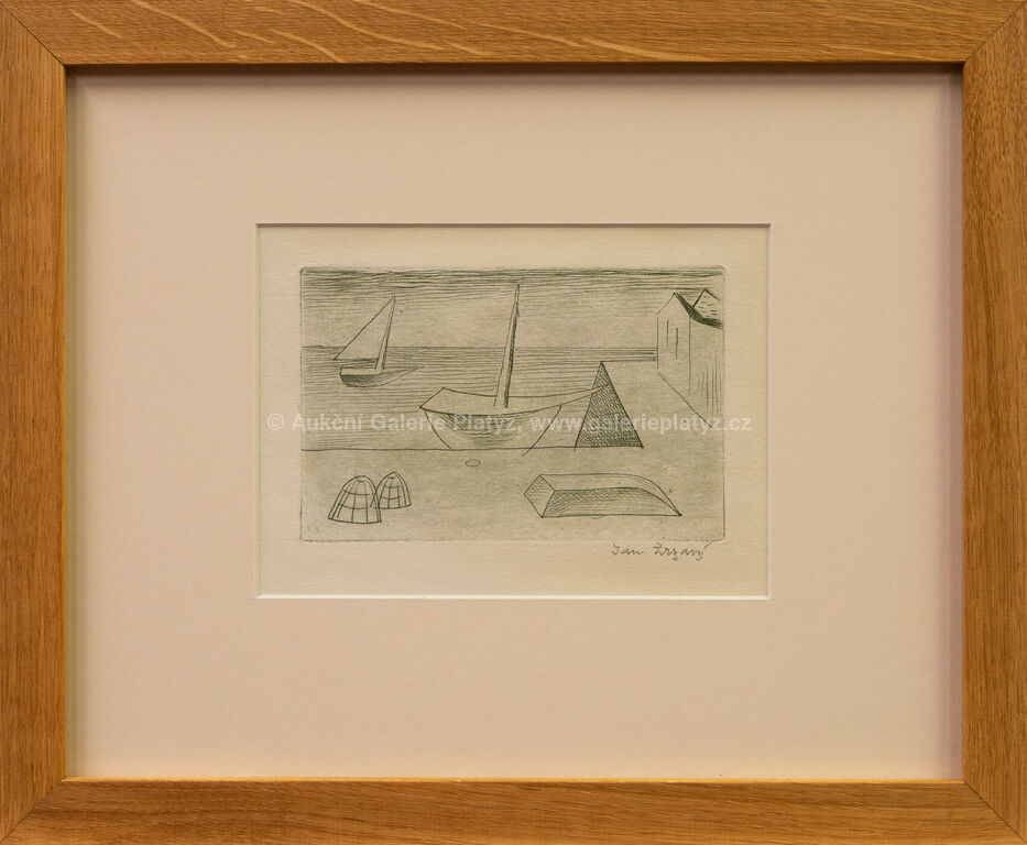 suchá jehla/papír, rozměr ve výřezu 12 x 16,5 cm, značeno vlevo dole v tisku, vpravo dole tužkou, paspartováno, zaskleno, rámováno, vznik 1947, v soupisu grafického díla Jana Zrzavého sepsaného Františkem Dvořákem pod číslem 24
